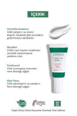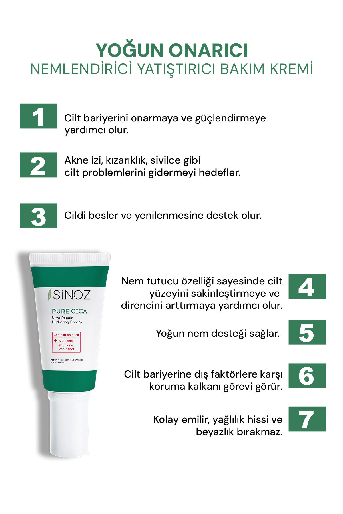 SİNOZ Pure Cica Yoğun Onarıcı Yatıştırıcı Nemlendirici Bakım Kremi 50 ml Tahriş Olmuş Hasarlı Ciltler İçin