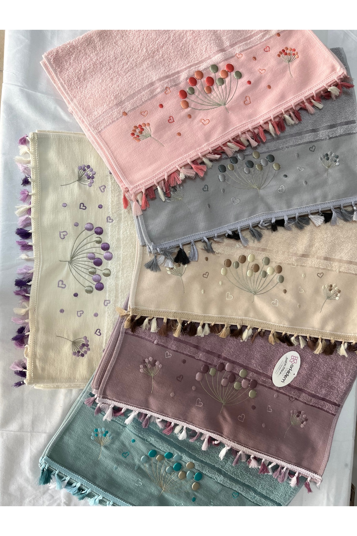 AYHANHOME Güpürlü Saten Işleme Desenli Kutulu Lüks Çeyizlik 50x90 6'lı El Yüz Havlu Seti