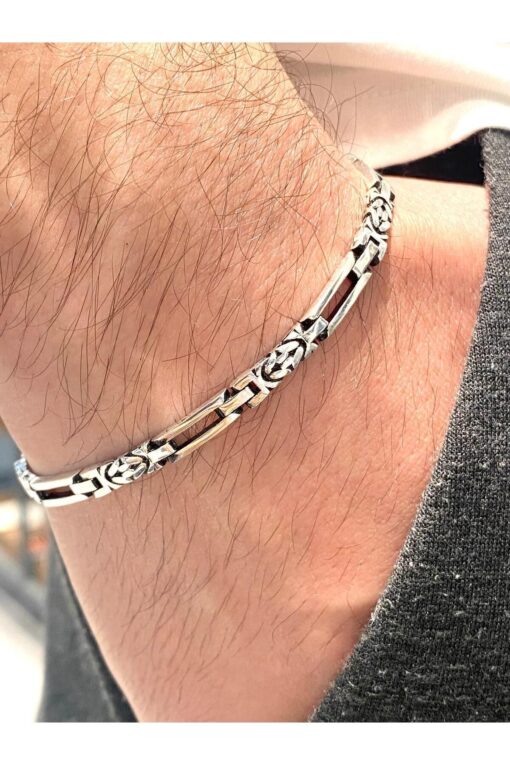 Siset Gümüş 925 Ayar Kral Desenli Erkek Gümüş Bileklik