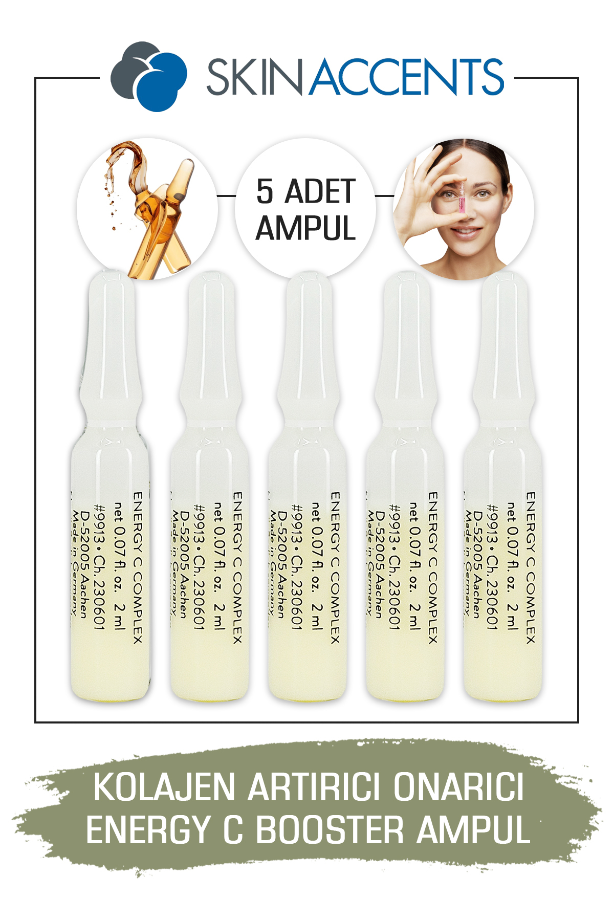 Skin Accents Kollajen Arttırıcı Onarıcı Ampul Energy C Booster Cilt Serumu 5 Adet Dermaroller Dermapen Serum
