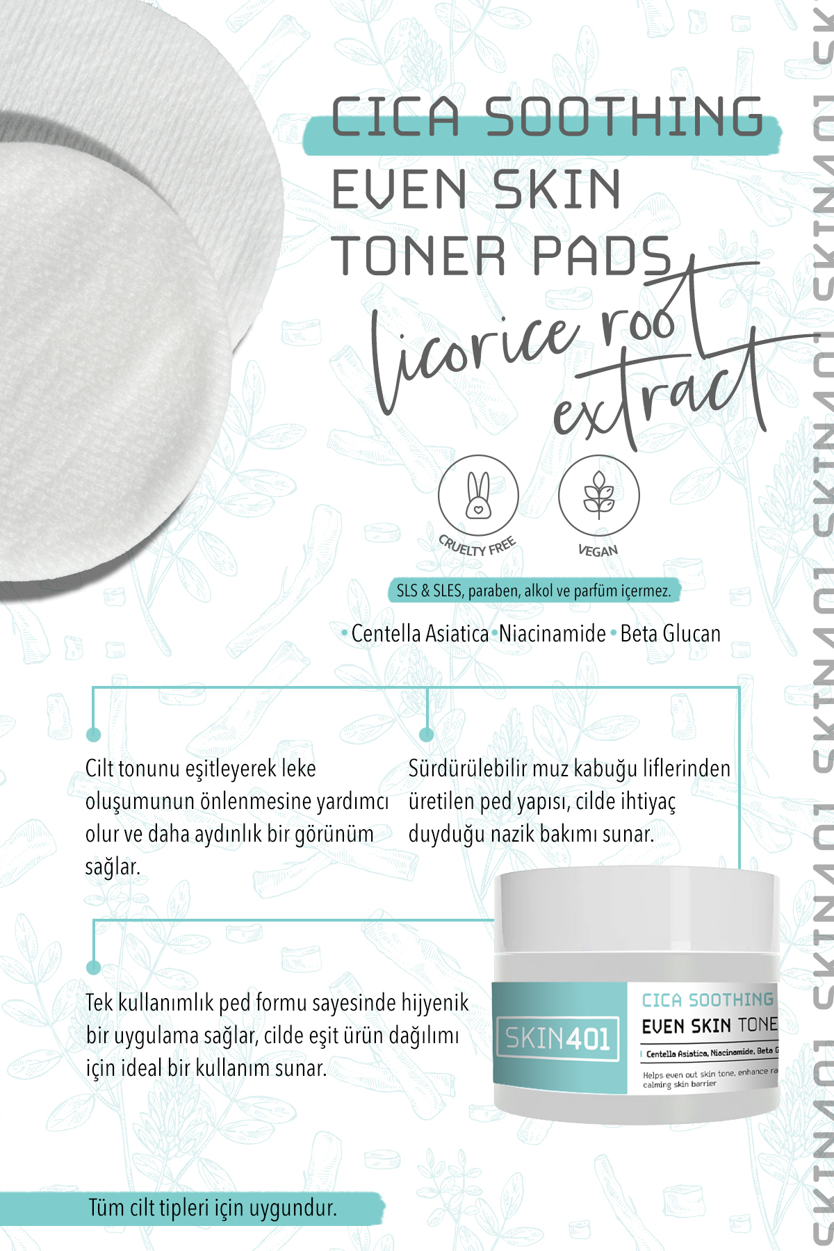 Skin401 Cica Yatıştırıcı Aydınlatıcı Tonik Pad 100 Adet (TONER PAD)