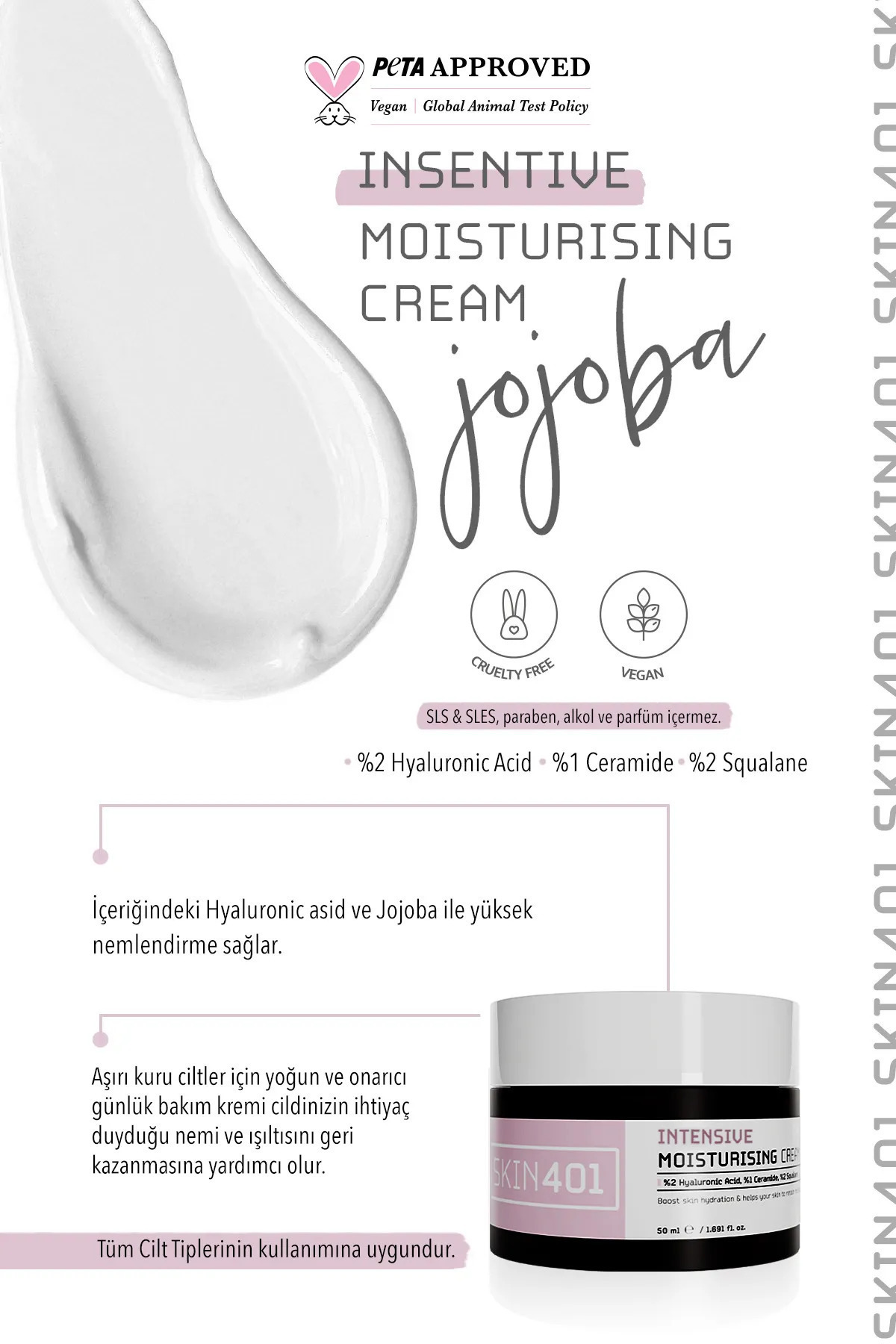 Skin401 Günlük Su Bazlı Yoğun Nemlendiricili Yüz Kremi 50ml