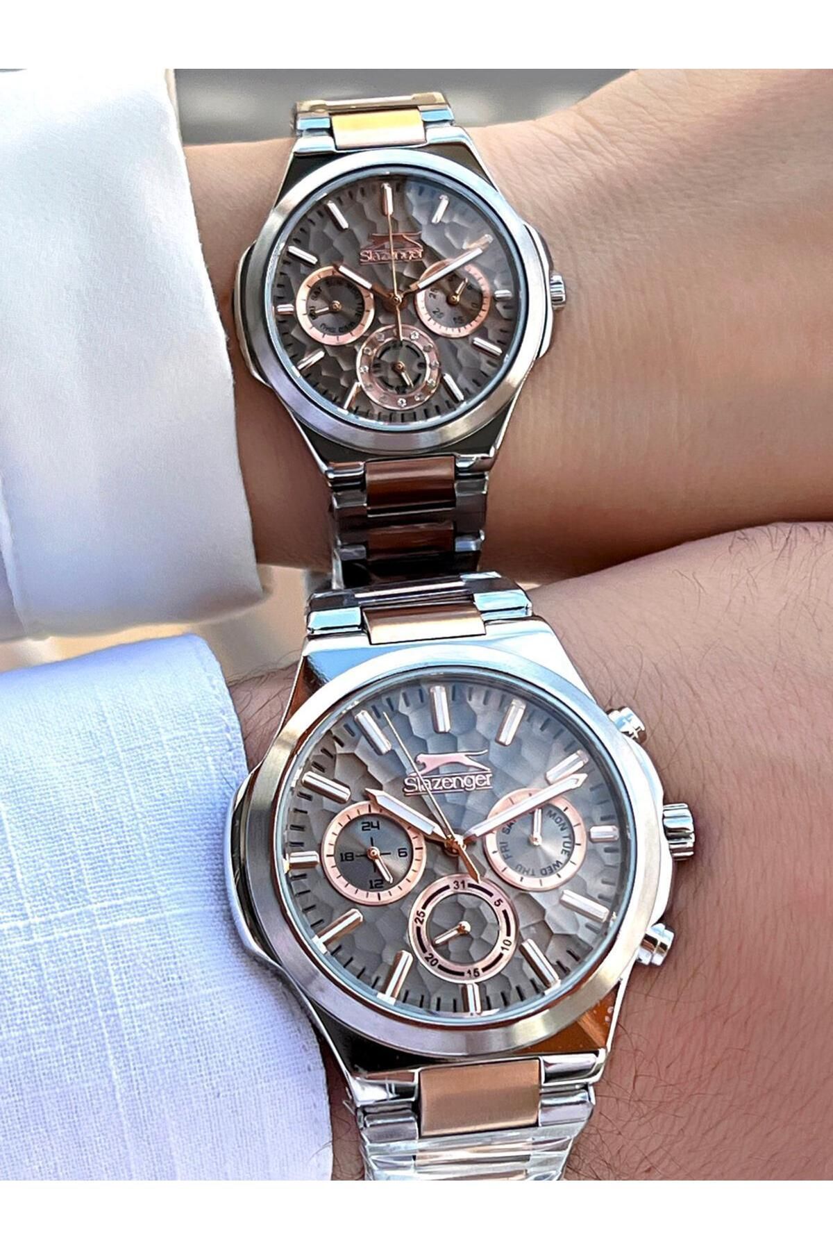 Slazenger Çiftlere Özel Çelik Kordon Kararma Renk Atma Yapmaz Kadran Fonksiyonları Aktif Erkek 5 Atm Suya Dayanıklı Kadın 3 Atm Suya Dayanıklı Çift Kol Saati Seti İÇ FONKSİYONLARI AKTİF (HAFTANIN GÜNÜ