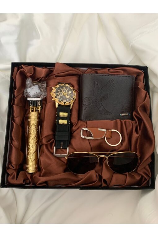 SMÖ AKSESUAR Özel Notuyla Erkek Saat Gözlük Anahtarlık Cüzdan ve Tıraş Makinesi Hediye Seti