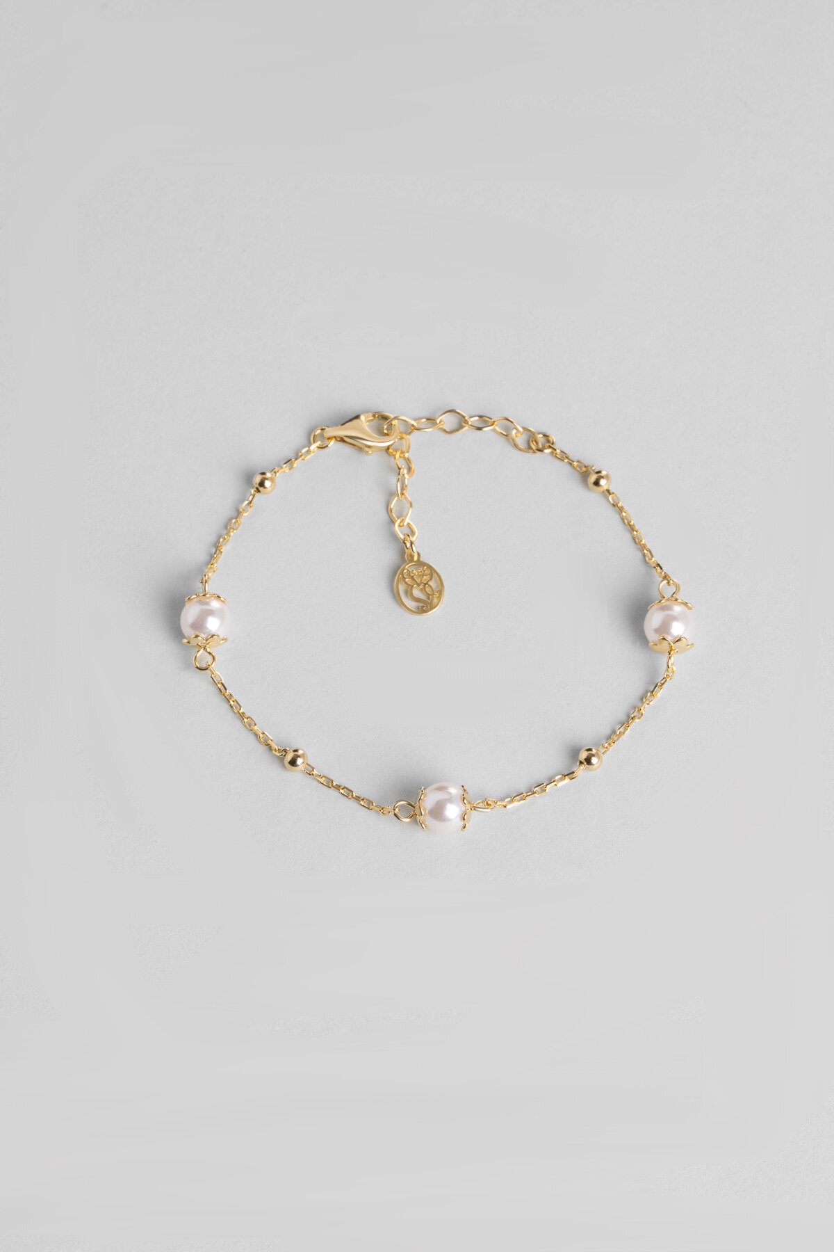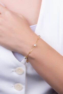 So CHIC… İnci Çiçeği 18 Ayar Sarı Altın Kaplama 20 Cm Gümüş Bileklik