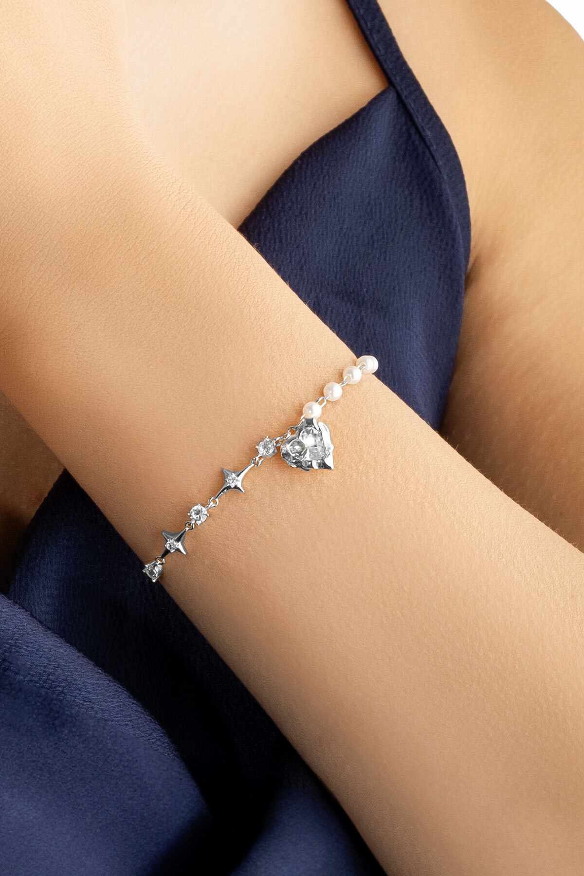 So CHIC… Sihirli Kalp 18 Ayar Beyaz Altın Kaplama Gümüş 19 Cm Tasarım Bileklik
