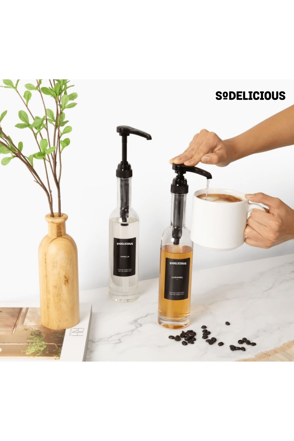 SODELICIOUS COFFEE TEA 2’li Set | 250ml Pompalı Cam Şurup Şişesi- Kahve , 18 Çeşit Siyah Etiket + Silikon Huni Hediyeli ürününü en uygun fiyata kozmetikara.com sitemizden sipariş verebilirsiniz.