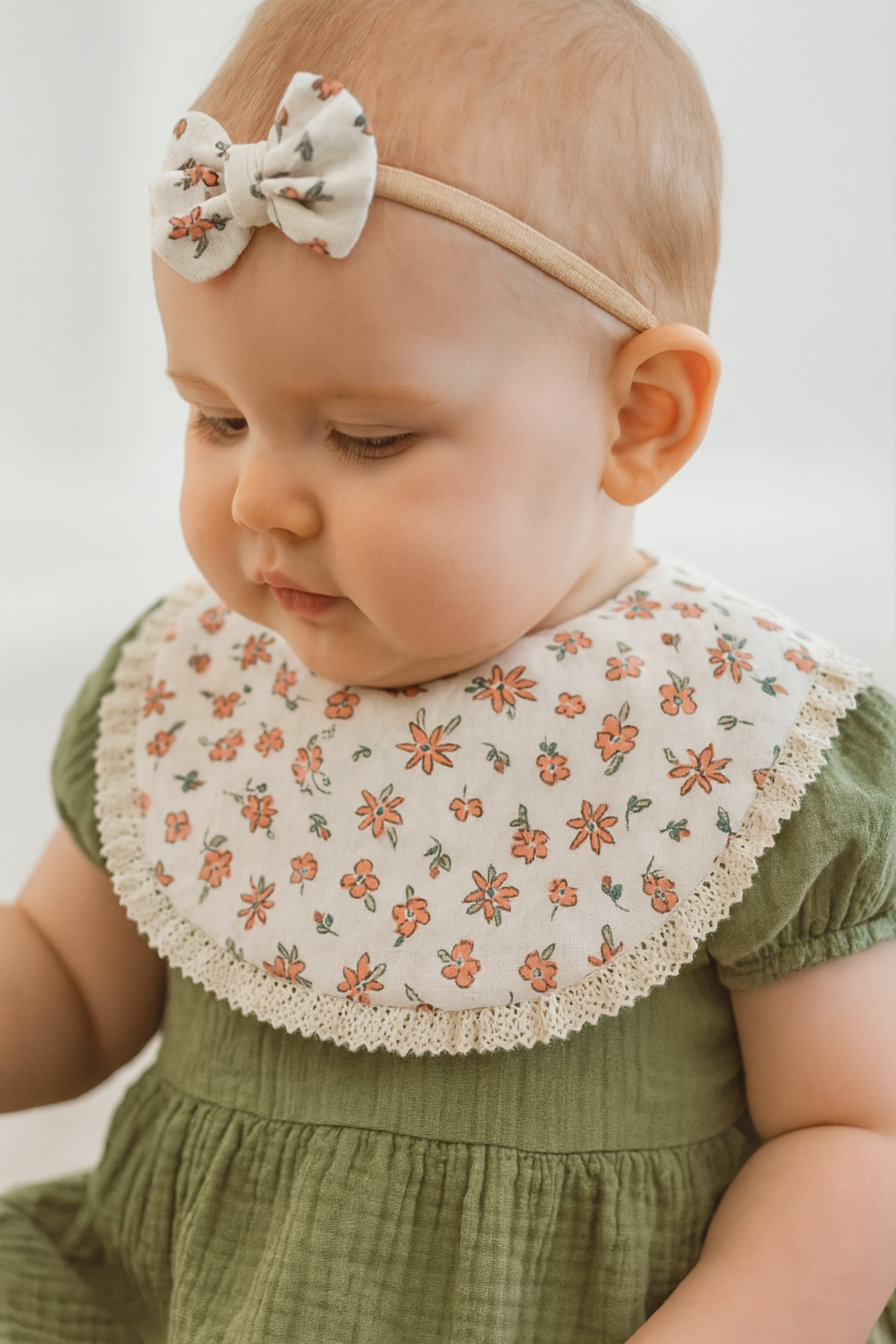 SOFT Kız bebek çiçekli mama önlüğü ikili set