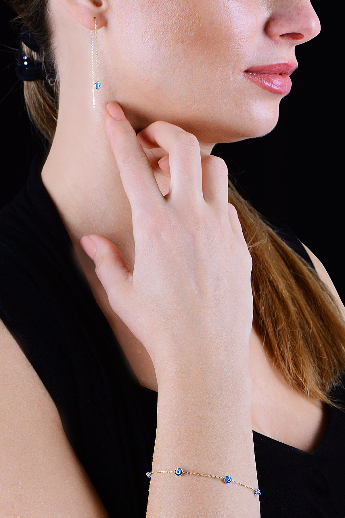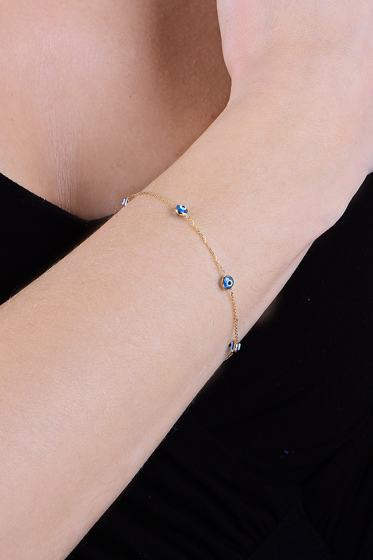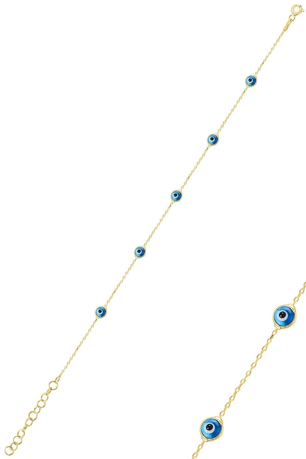 Söğütlü Silver Gümüş Altın Cam Göz Yaldızlı Nazar Gümüş Bileklik Sgtl10610gold