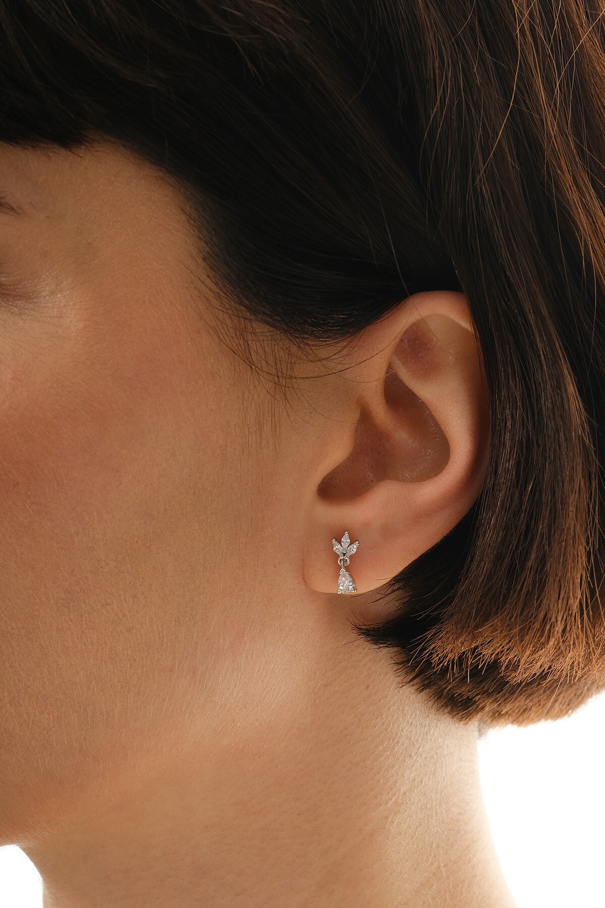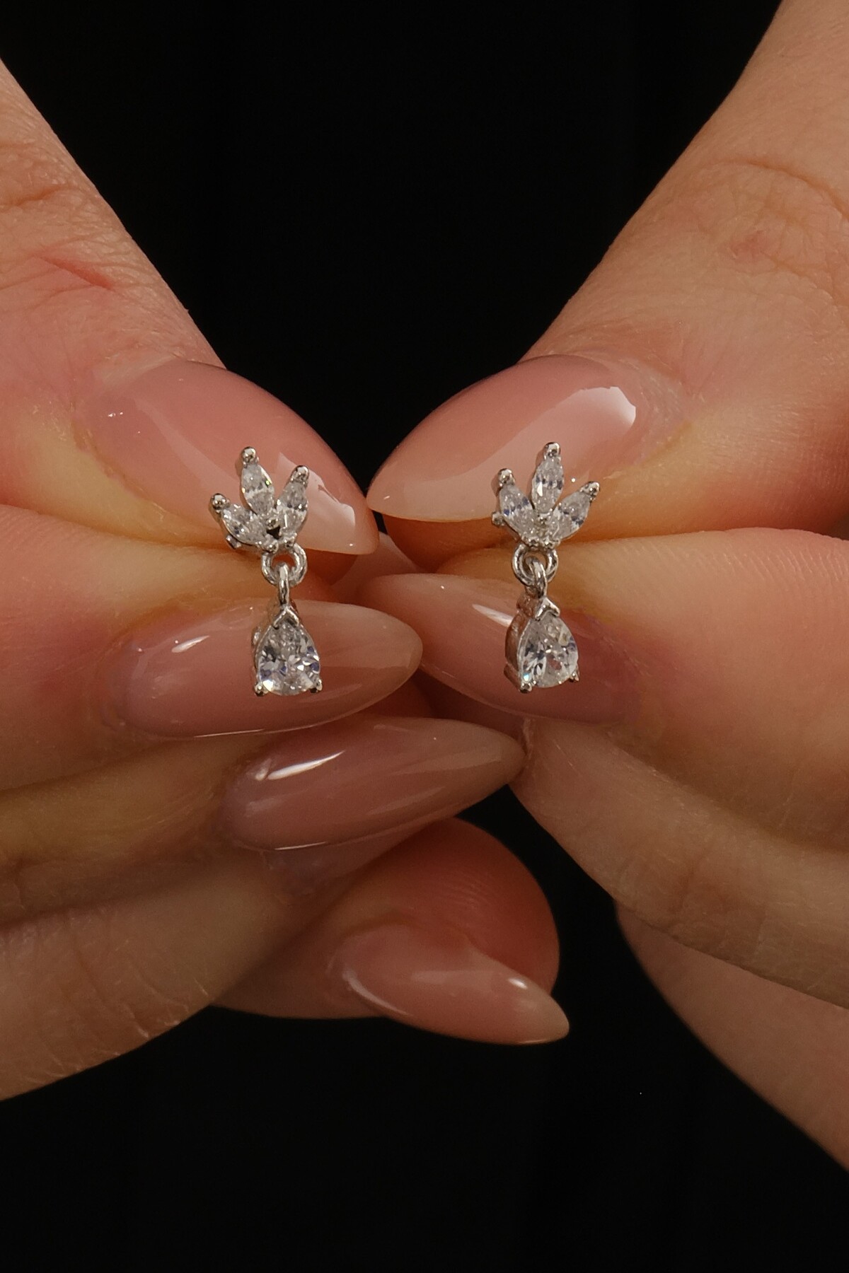 Söğütlü Silver Gümüş rodyumlu zirkon taşlı damla sallantılı lotus küpe SGTL12836RODAJ