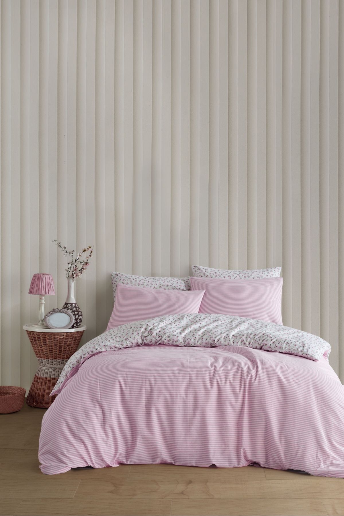 English Home Pretty Charm Kolay Ütülenir Çarşaflı Tek Kişilik Nevresim Takımı 160×220 cm Pudra
