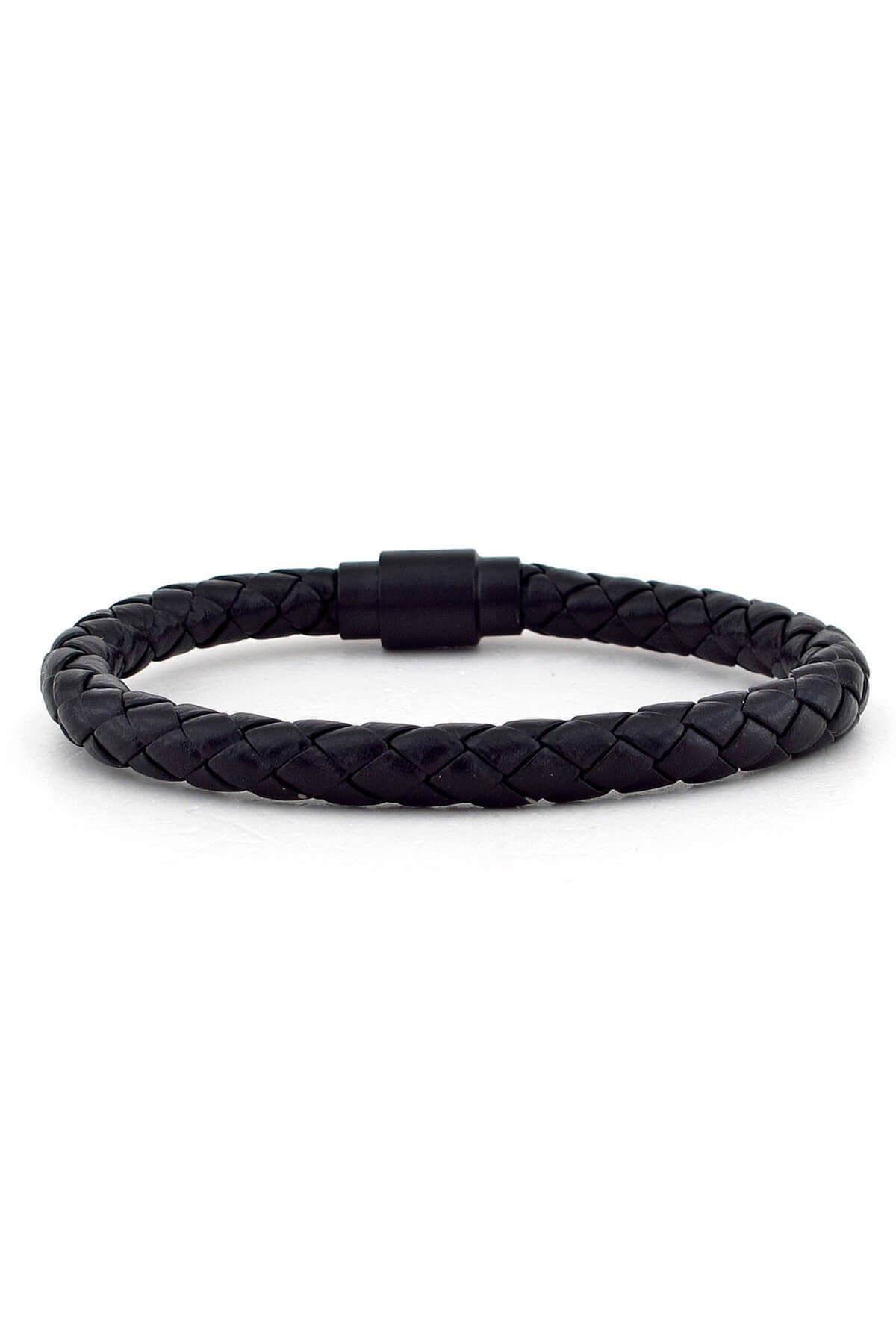 Solfera Full Siyah Deri Erkek Bileklik Mıknatıslı Klips Bt055