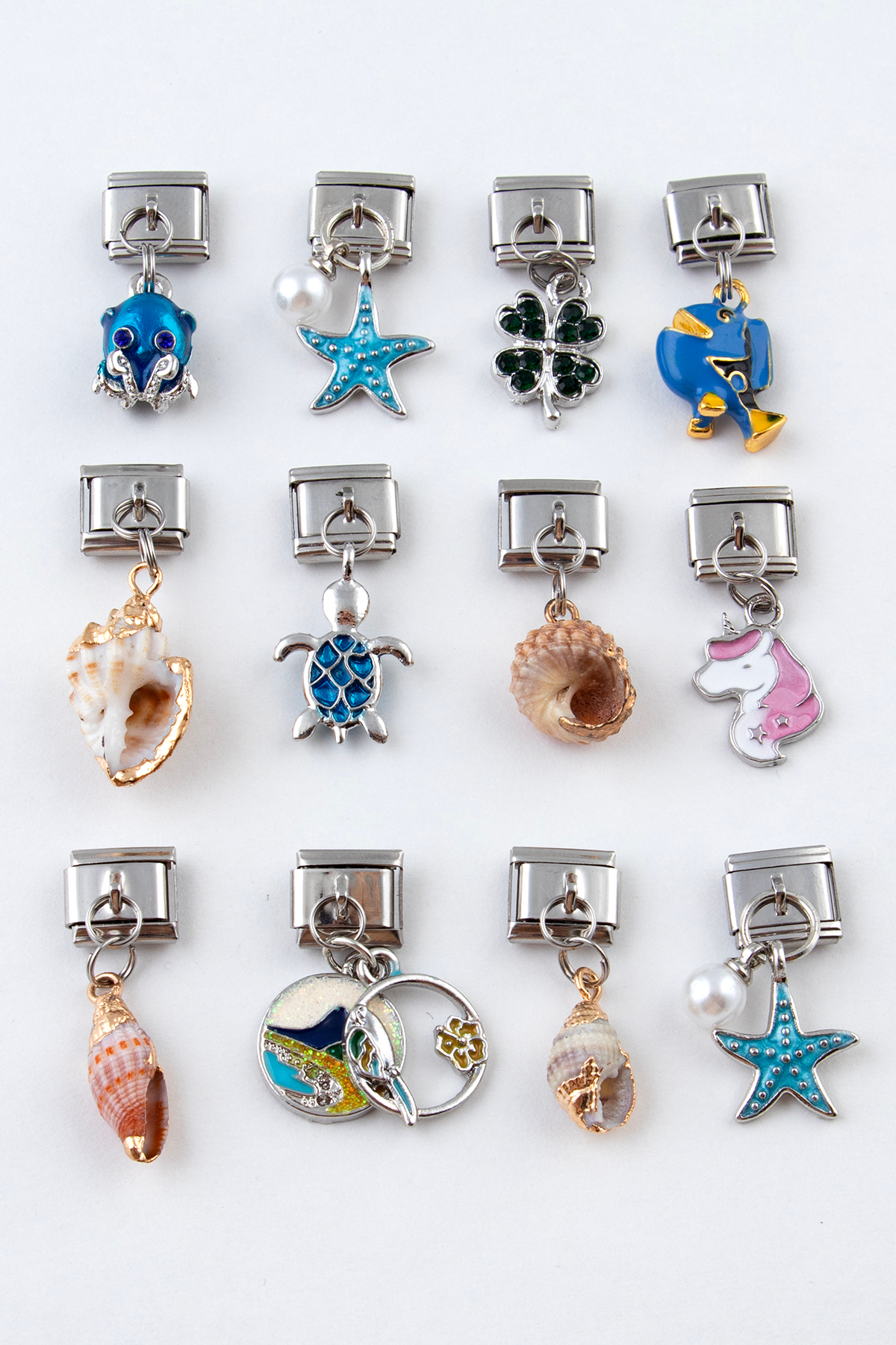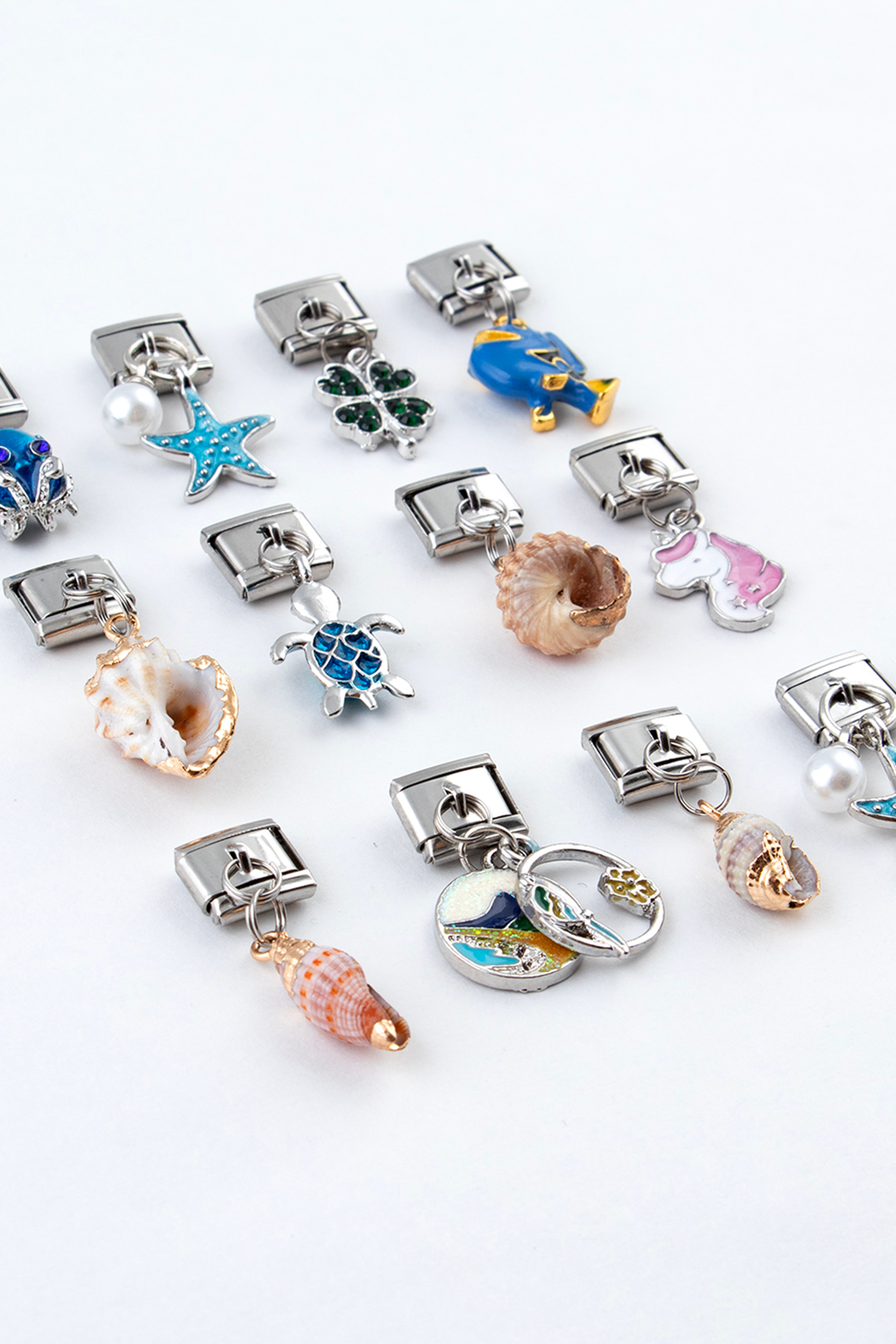 Sortie Aksesuar Doğal Deniz Kabuğu Figürlü Paslanmaz Çelik İtalyan Charm Bileklik Kişiselleştirme Eki Link