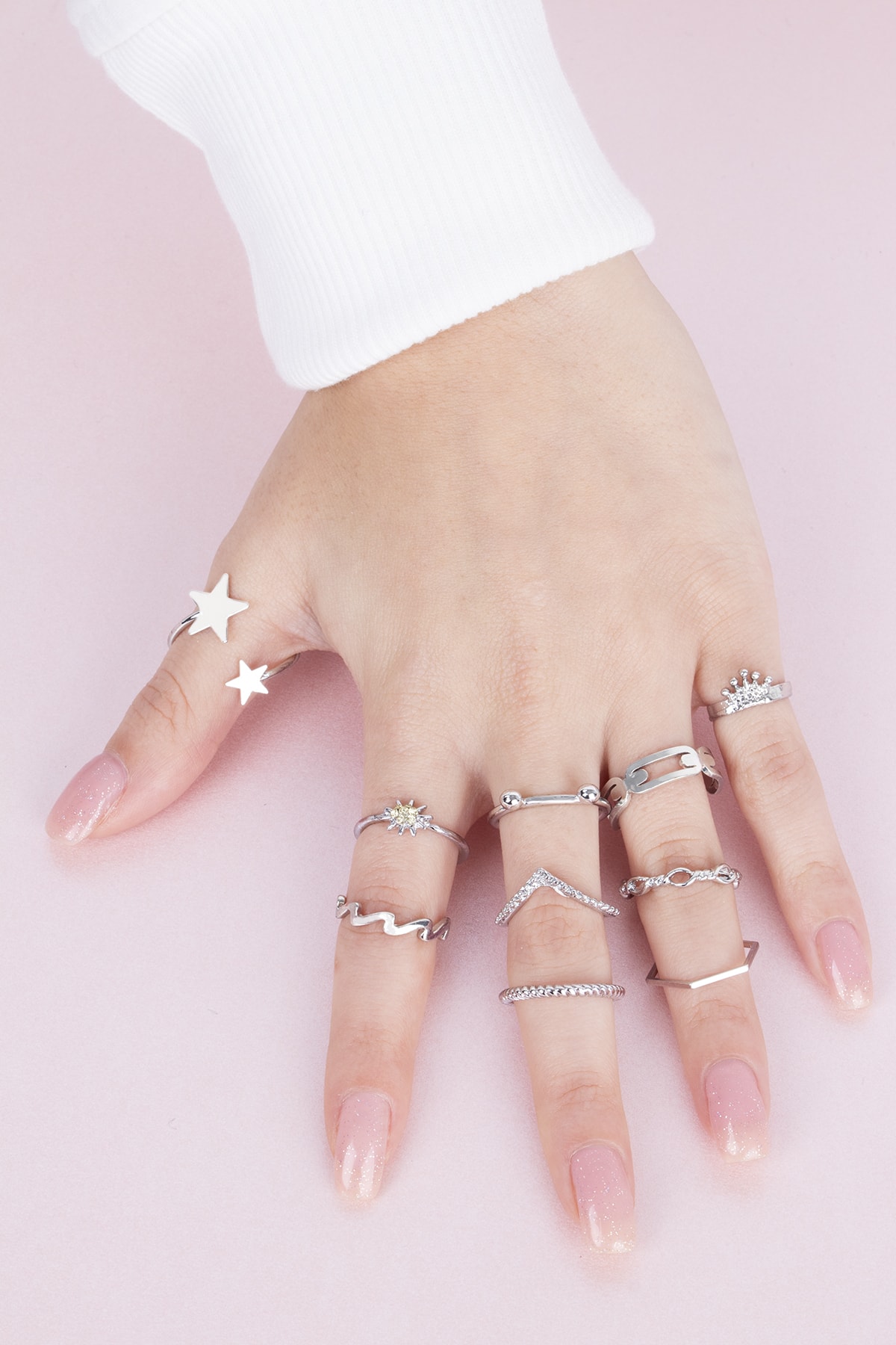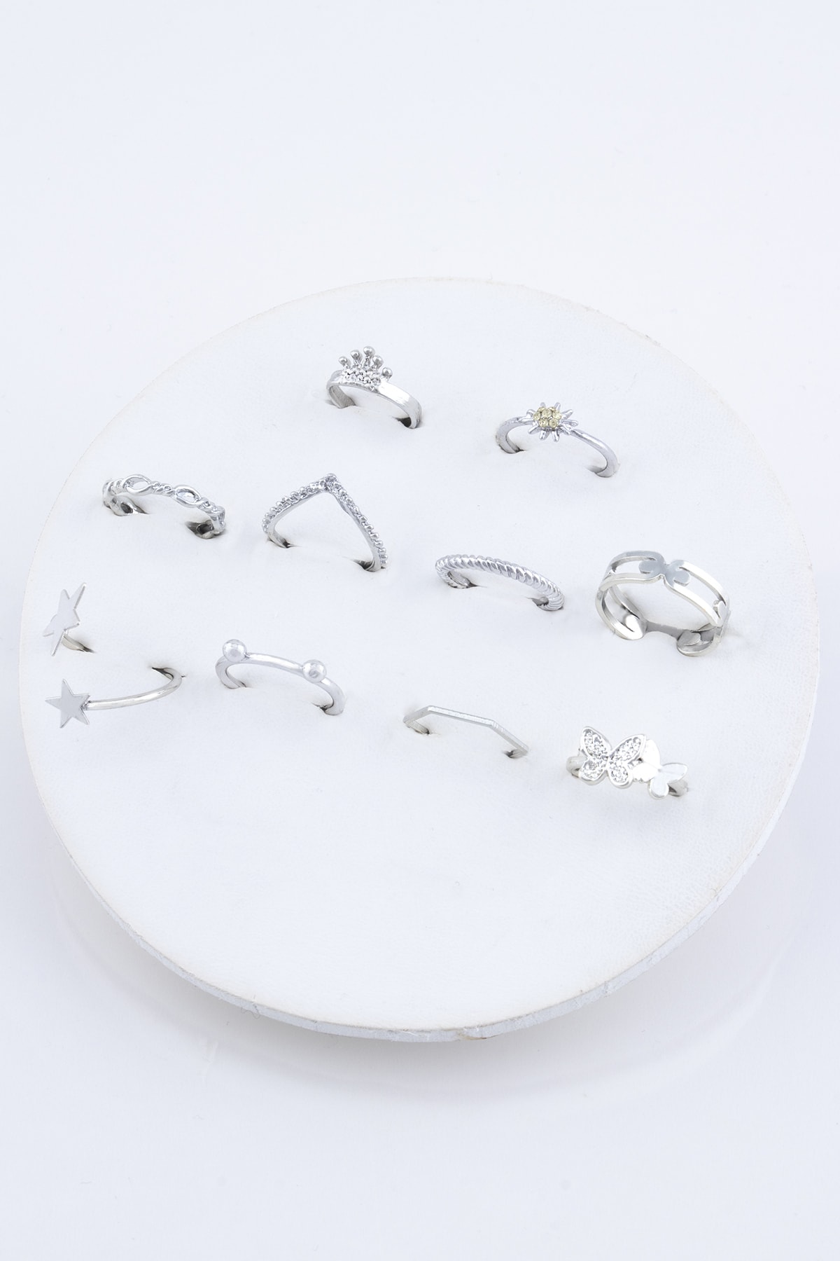 Sortie Aksesuar Kelebek, Yıldız Ve Kraliyet Tacı Figülü Zirkon Taşlı 10’lu Yüzük Kombini 012