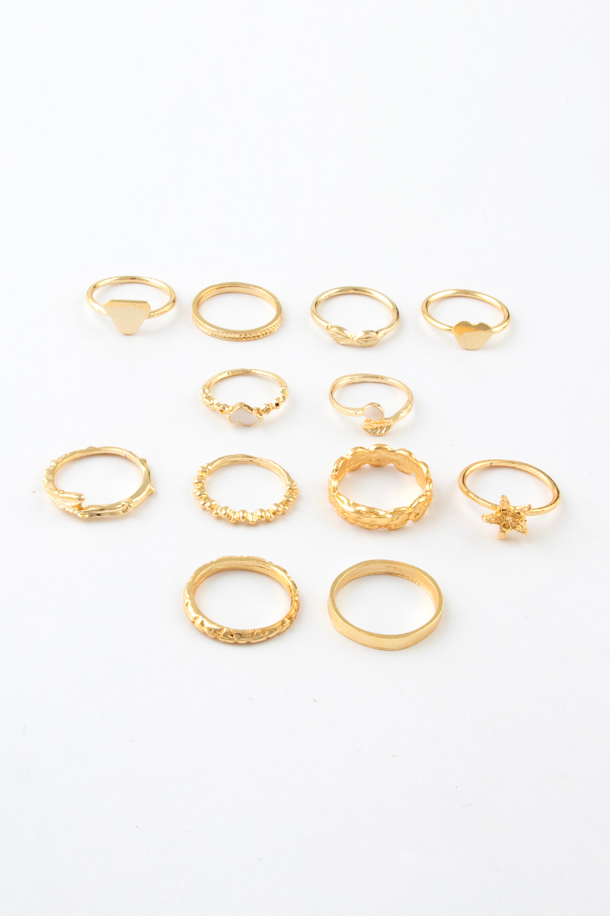 Sortie Aksesuar Üçgen Yıldız ve Yaprak Figürlü 12’li Beyaz Mineli Kombin Yüzük Seti