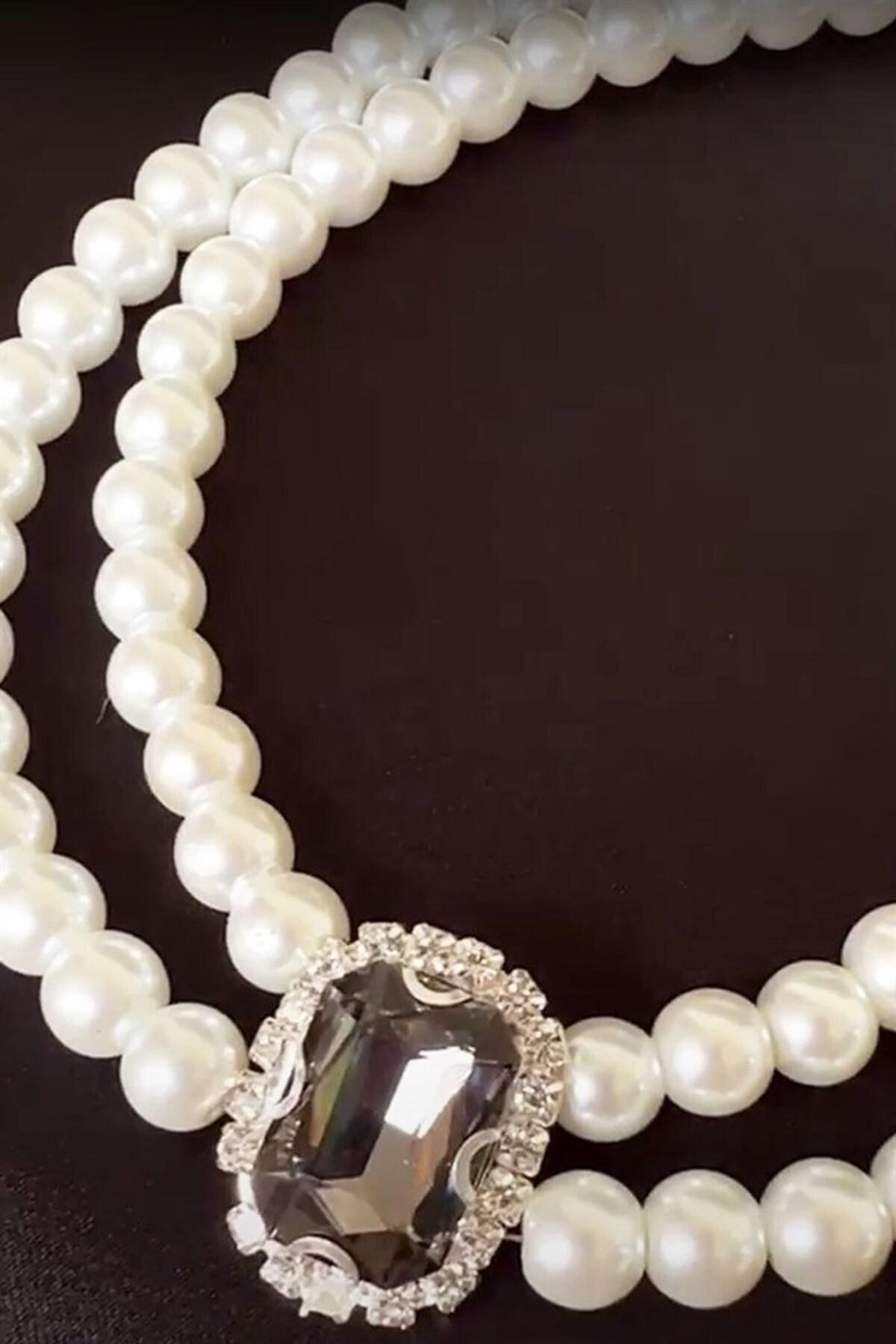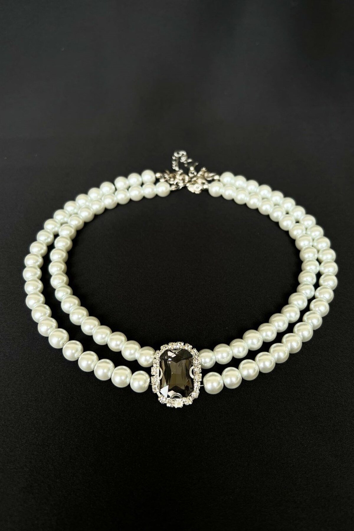 Pelin Aksesuar Silver 3 Sıralı İncili Kristalli Choker Kolye
