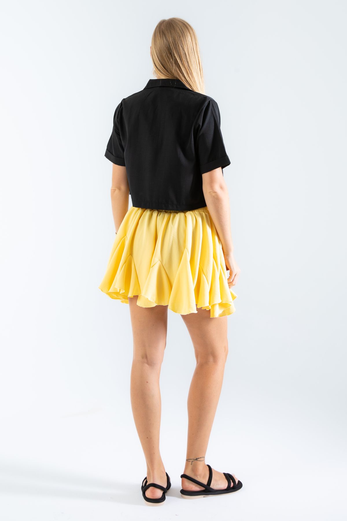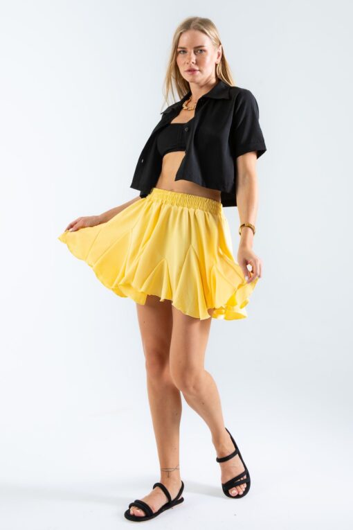 Space Fashion Sarı Beli Lastikli Mini Etek