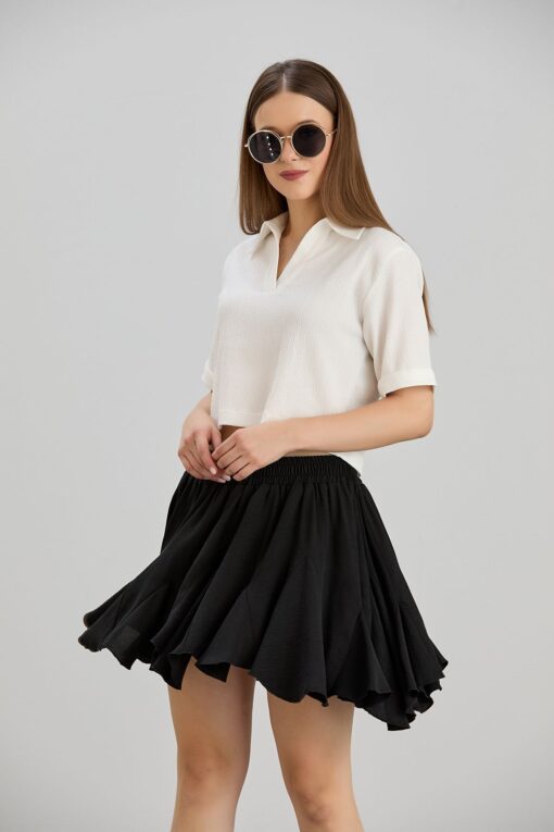 Space Fashion Siyah Beli Lastikli Mini Etek