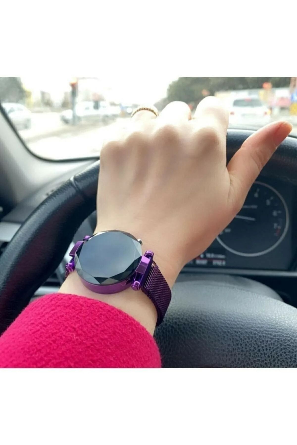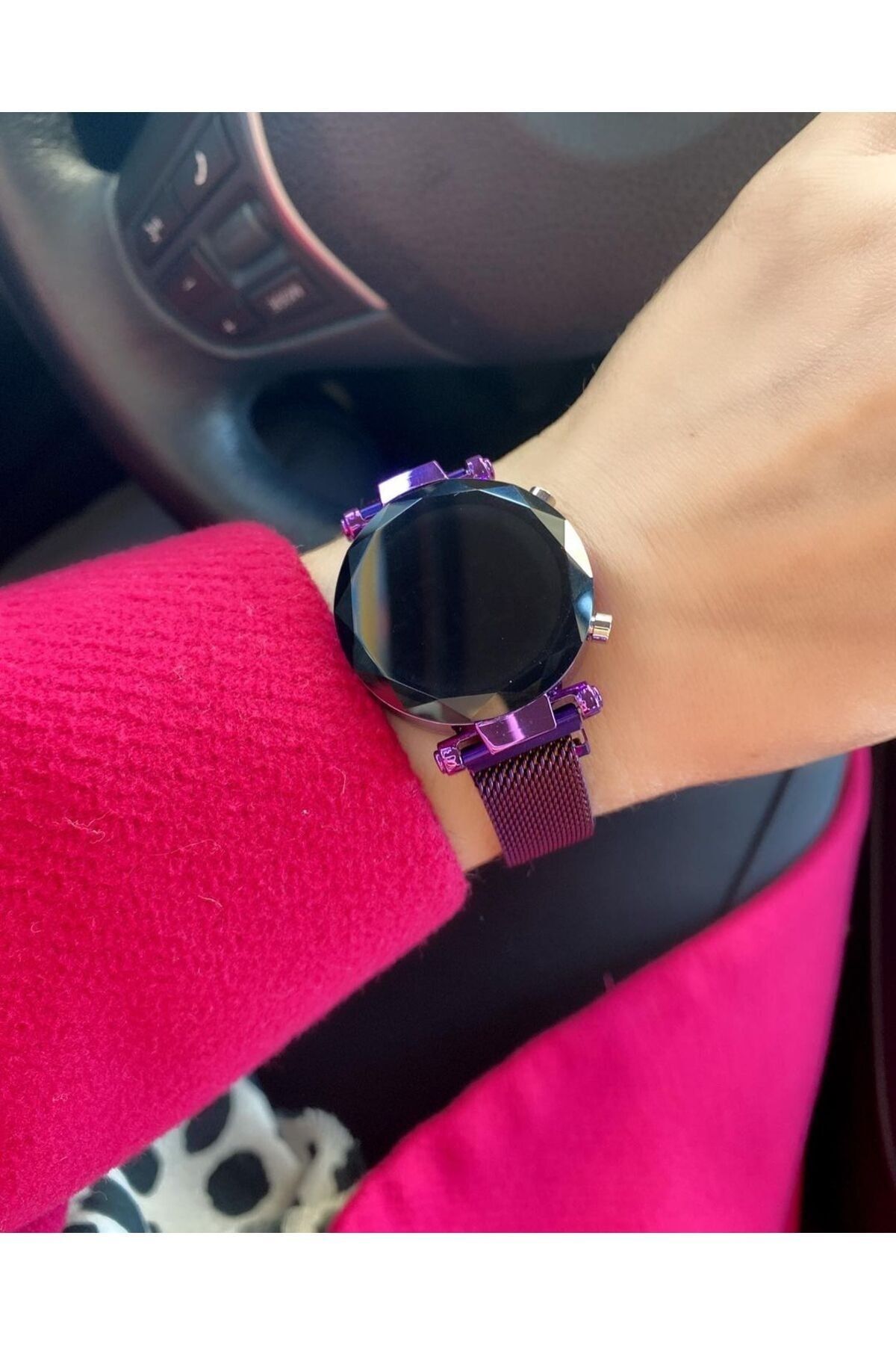 Mor renkli mıknatıslı kordonu ve LED ekranı ile dikkat çeken bu dijital saat, modern tasarımı ve fonksiyonel özellikleri ile günlük kullanım için idealdir