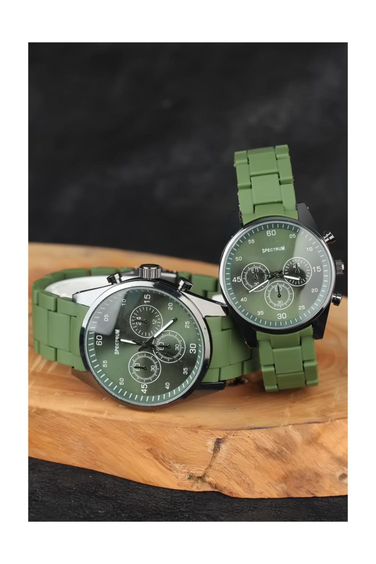 Spectrum Sevgili Saatleri Erkek Bayan Çift Kombin Metal Kasa Yeşil Renk Silikon Kordonlu