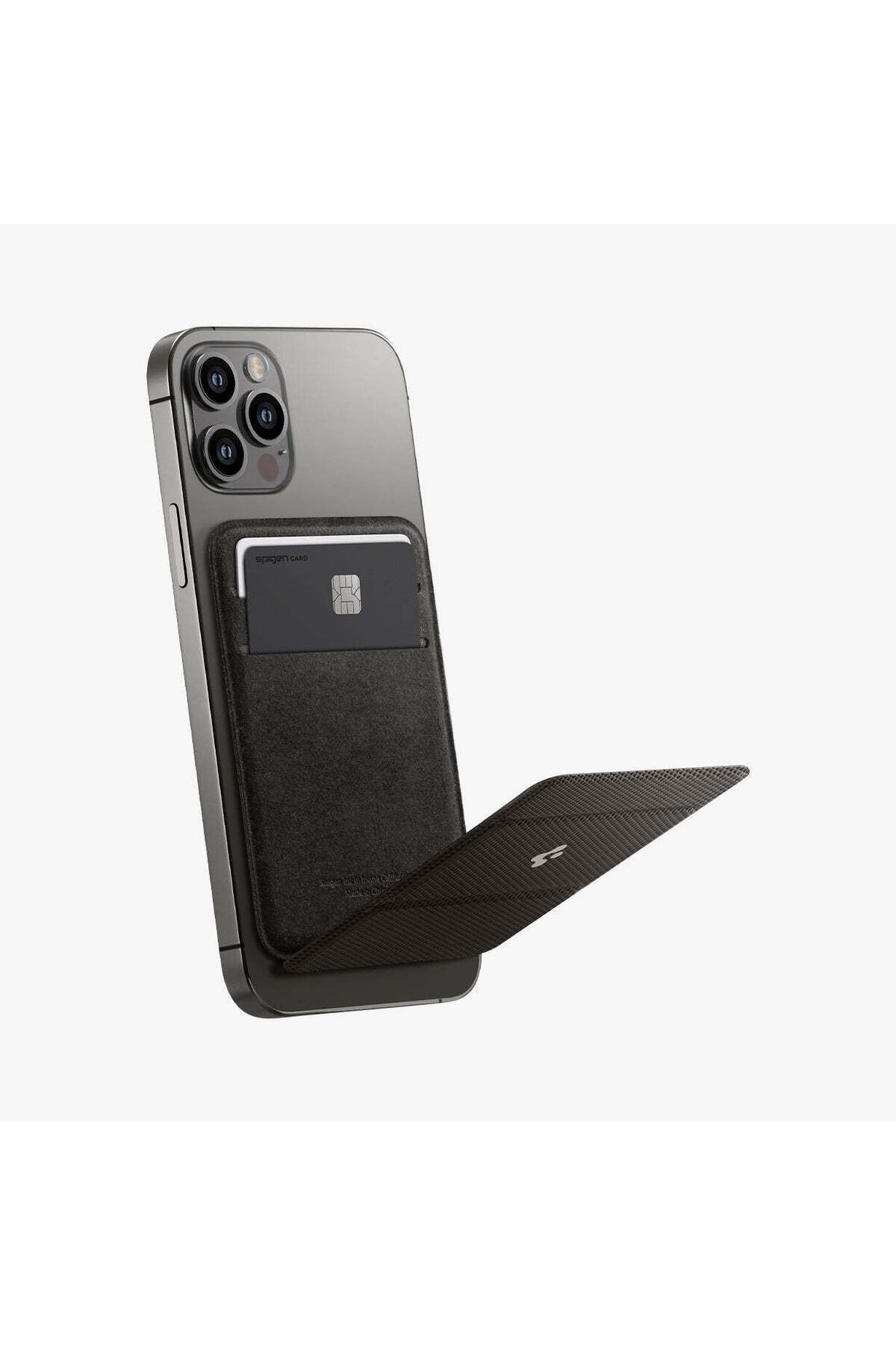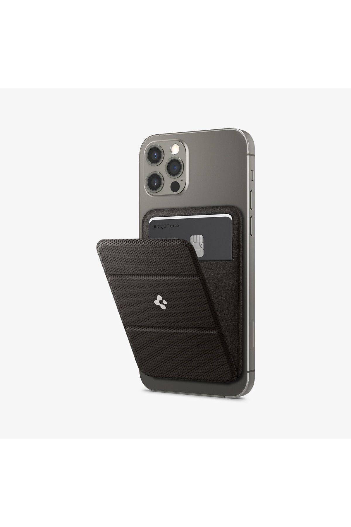 Spigen MagFit iPhone için MagSafe özellikli Kartlı Manyetik Cüzdan Smart Fold Wallet Gunmetal – AMP02766