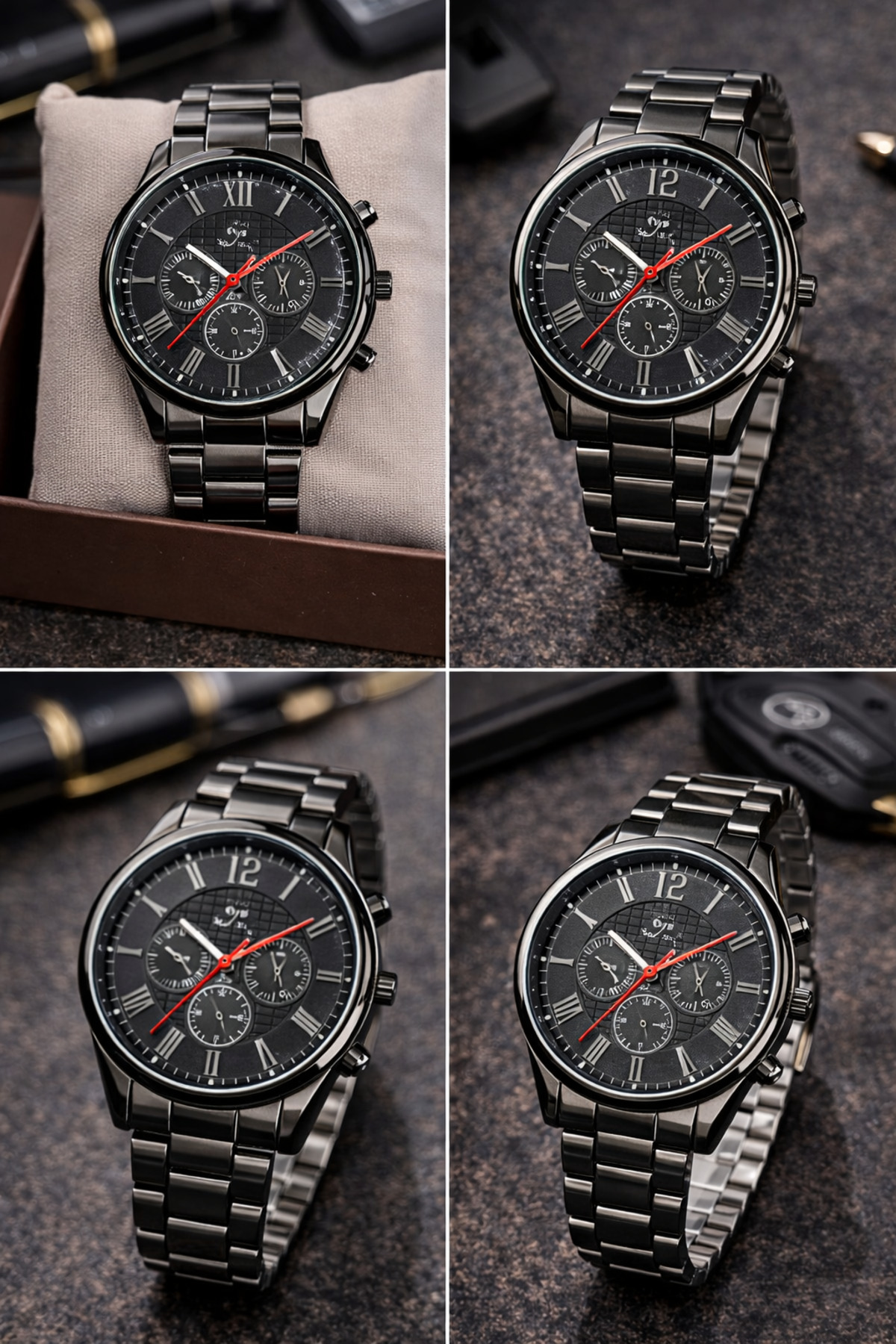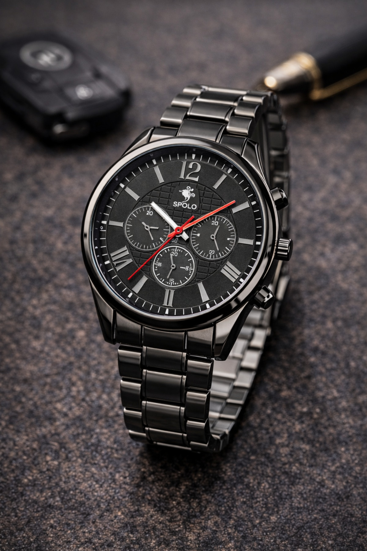 SPOLO Erkek Kol Saati Siyah Metal Kordon Analog Quartz Modern Tasarım
