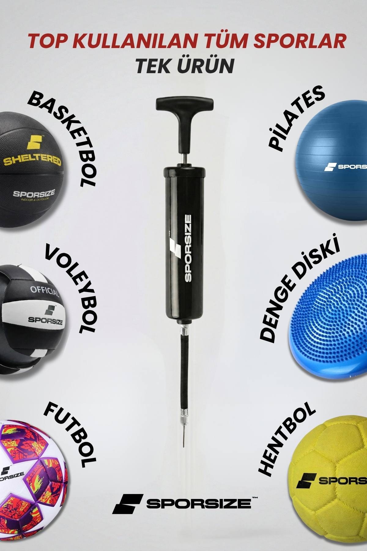Sporsize Top Şişirme Pompası – Futbol Basketbol Voleybol Hentbol Pilates Topu Denge Diski Şişirme Pompası