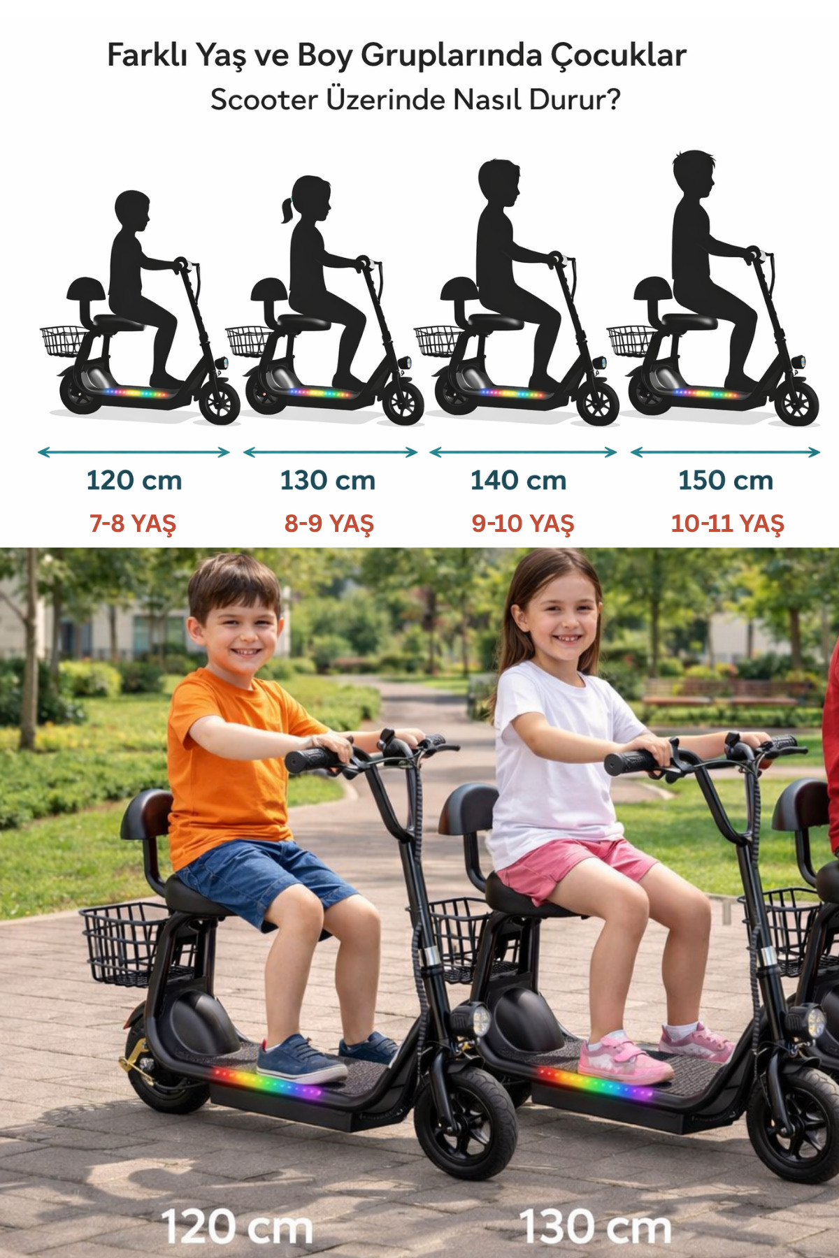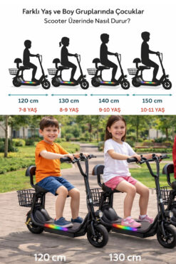 Electron Scooter Çocuk Elektrikli – 130w, Led Işıklı, Amortisörlü (DİZLİK VE DİRSEKLİK HEDİYELİ)