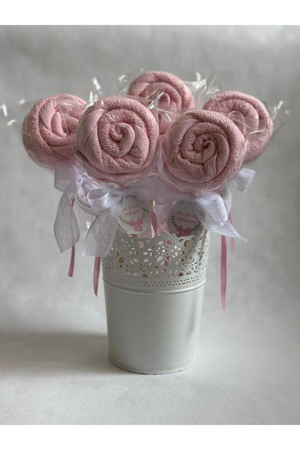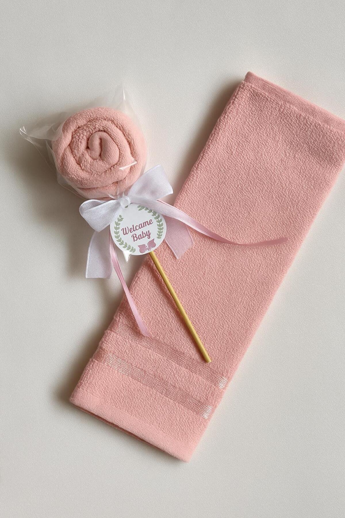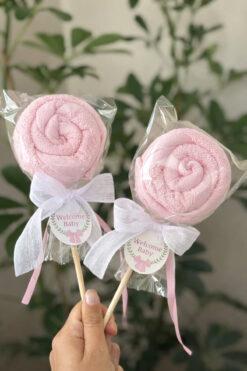 S&R 5 Adet Bebek Hediyelik Lolipop Görünümlü Havlu Pembe Welcome Baby İngilizce Yazılı