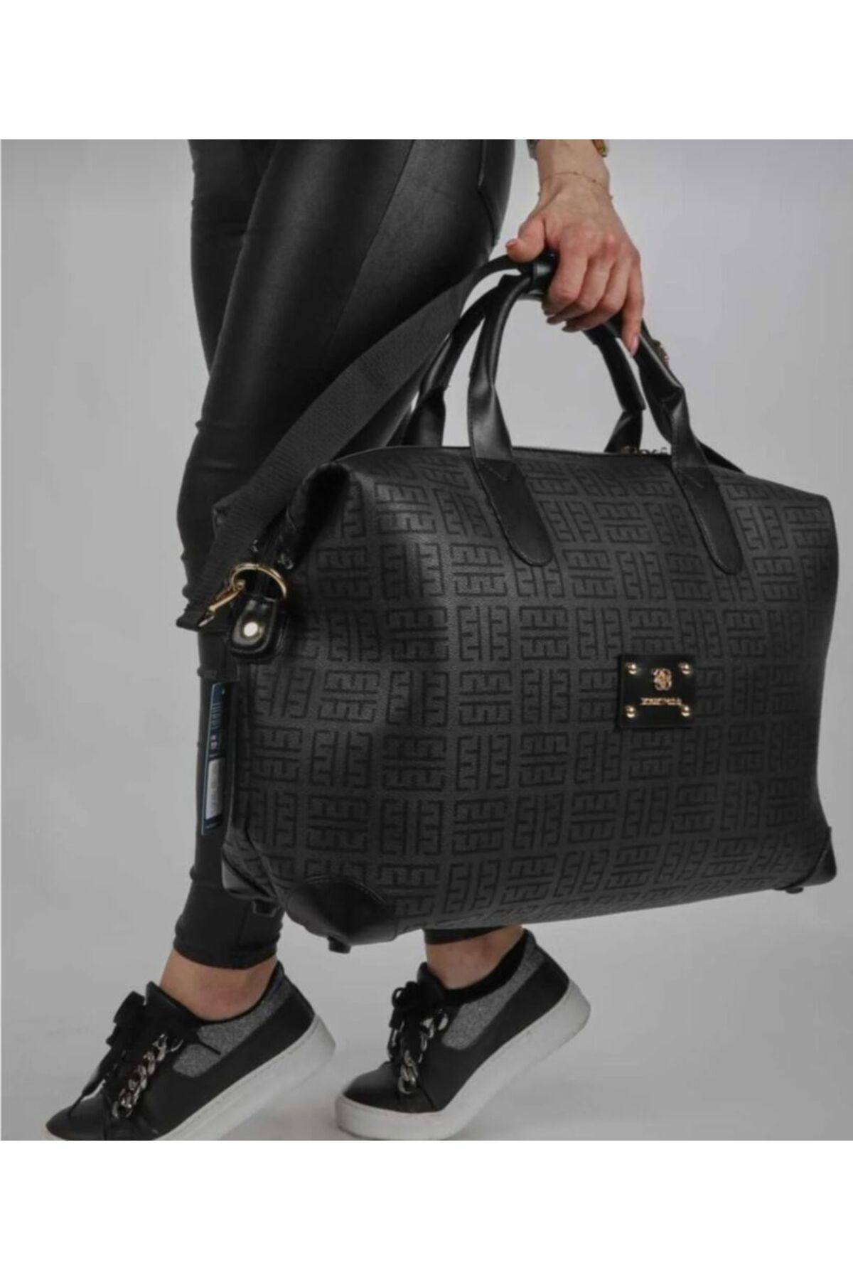 ST Bags Miami Polo Büyük Boy Baskılı Siyah Valiz Tarzı El Ve Omuz Çantası