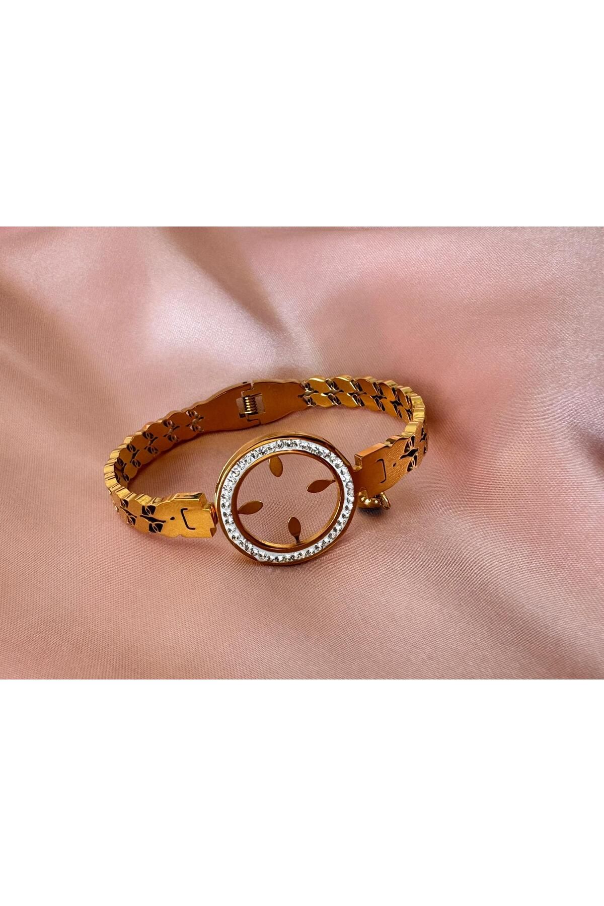 Genel Markalar Model Kalın Taşlı Çelik Altın Rengi Bileklik B Kalite