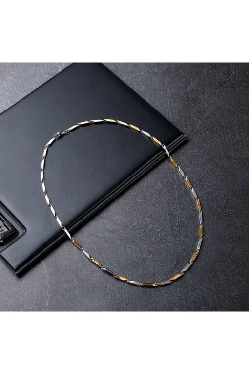 STAİNLES Erkek Çelik Kral Çift Renk Ince Şık Kolye 1mm Kalınlığında