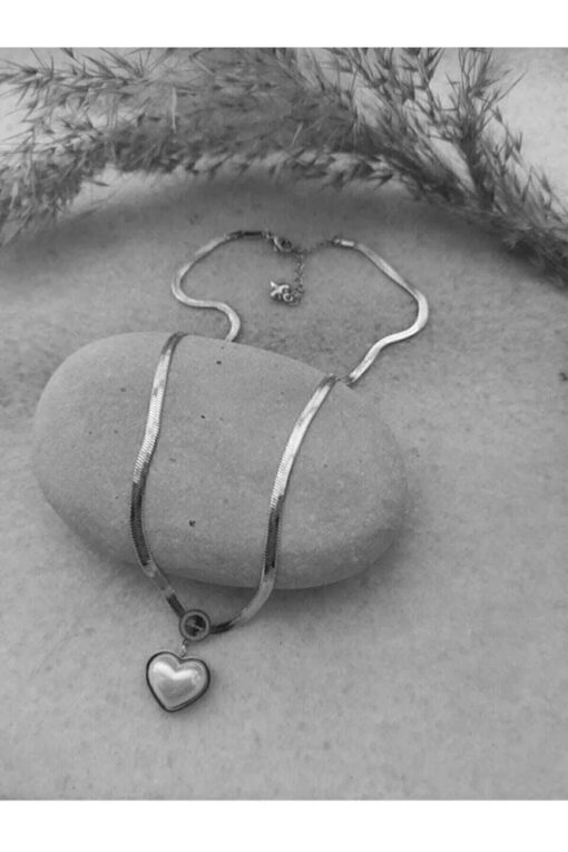 stainless steell Çelik Altın Renk Kalp Sedef Italyan Zincir Kolye