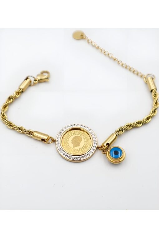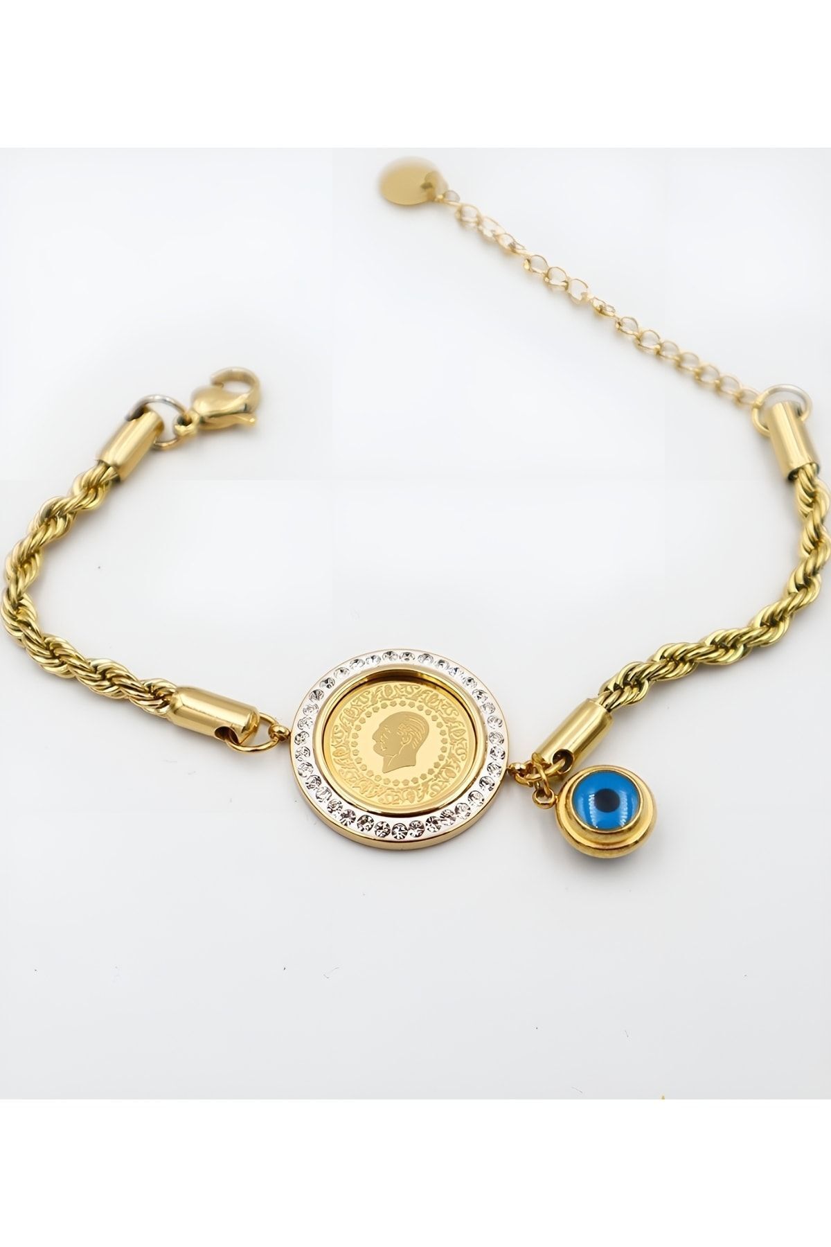 stainless steell Çeyrek Ve Nazar Boncuklu Çelik Bileklik Antialerjik