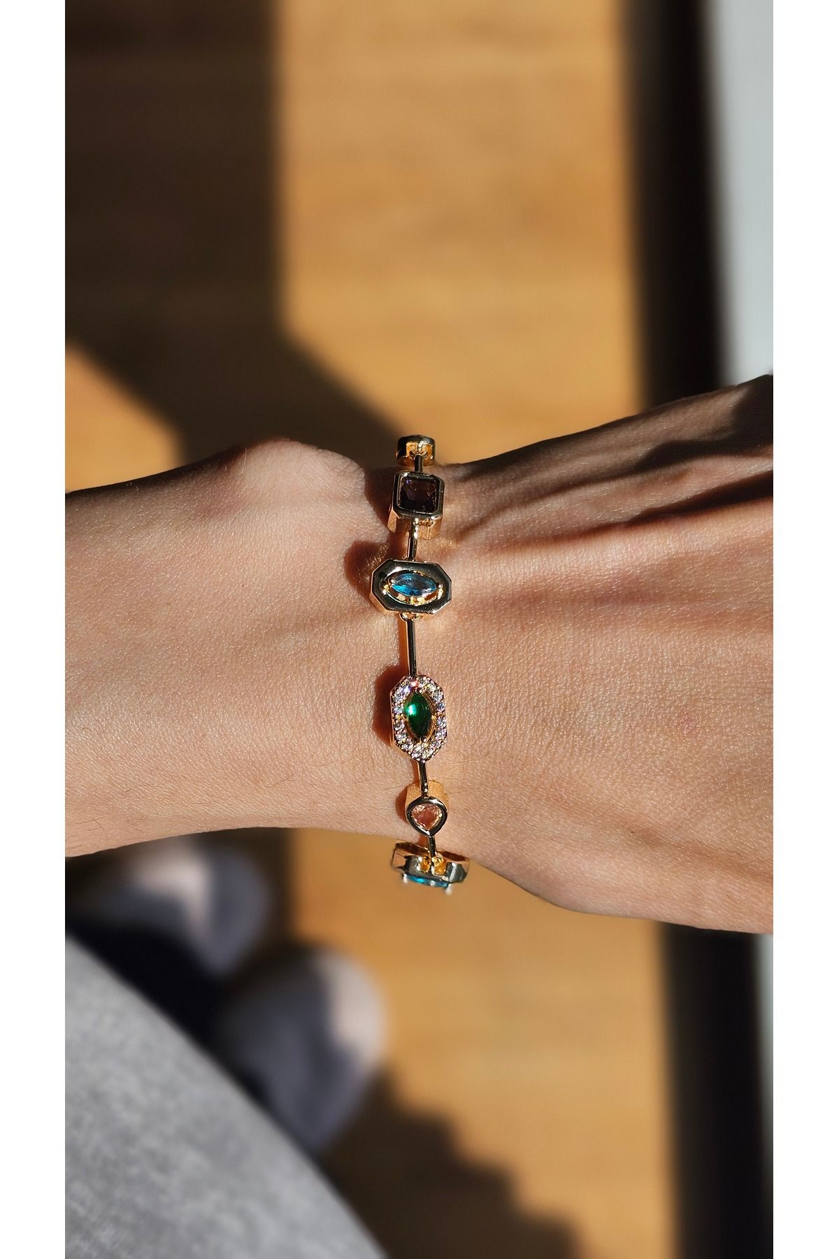 stainless steell Renkli Taşlı Geometrik Gold Çelik Bileklik – Hipoalerjenik