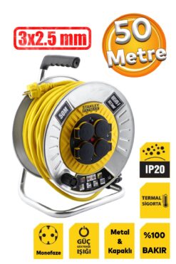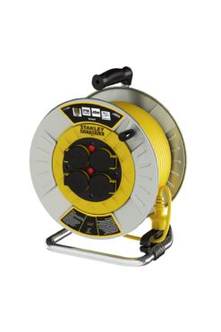 Stanley Seyyar Metal Makaralı 50 Metre 3×2.5 Mm %100 Bakır 4 Prizli Elektrikli Araç Uzatma Kablosu H05vv-f