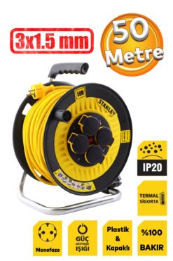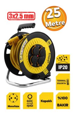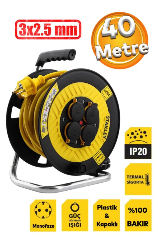 Stanley %100 Bakır 3x2.5 Mm 40 Metre Plastik Makaralı Seyyar 4 Prizli Elektrikli Araç Uzatma Kablosu H05vv-f Fiyatları, Özellikleri ve Yorumları