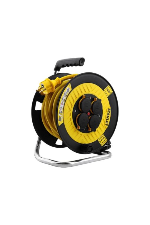 Stanley %100 Bakır 3×2.5 Mm 40 Metre Plastik Makaralı Seyyar 4 Prizli Elektrikli Araç Uzatma Kablosu H05vv-f