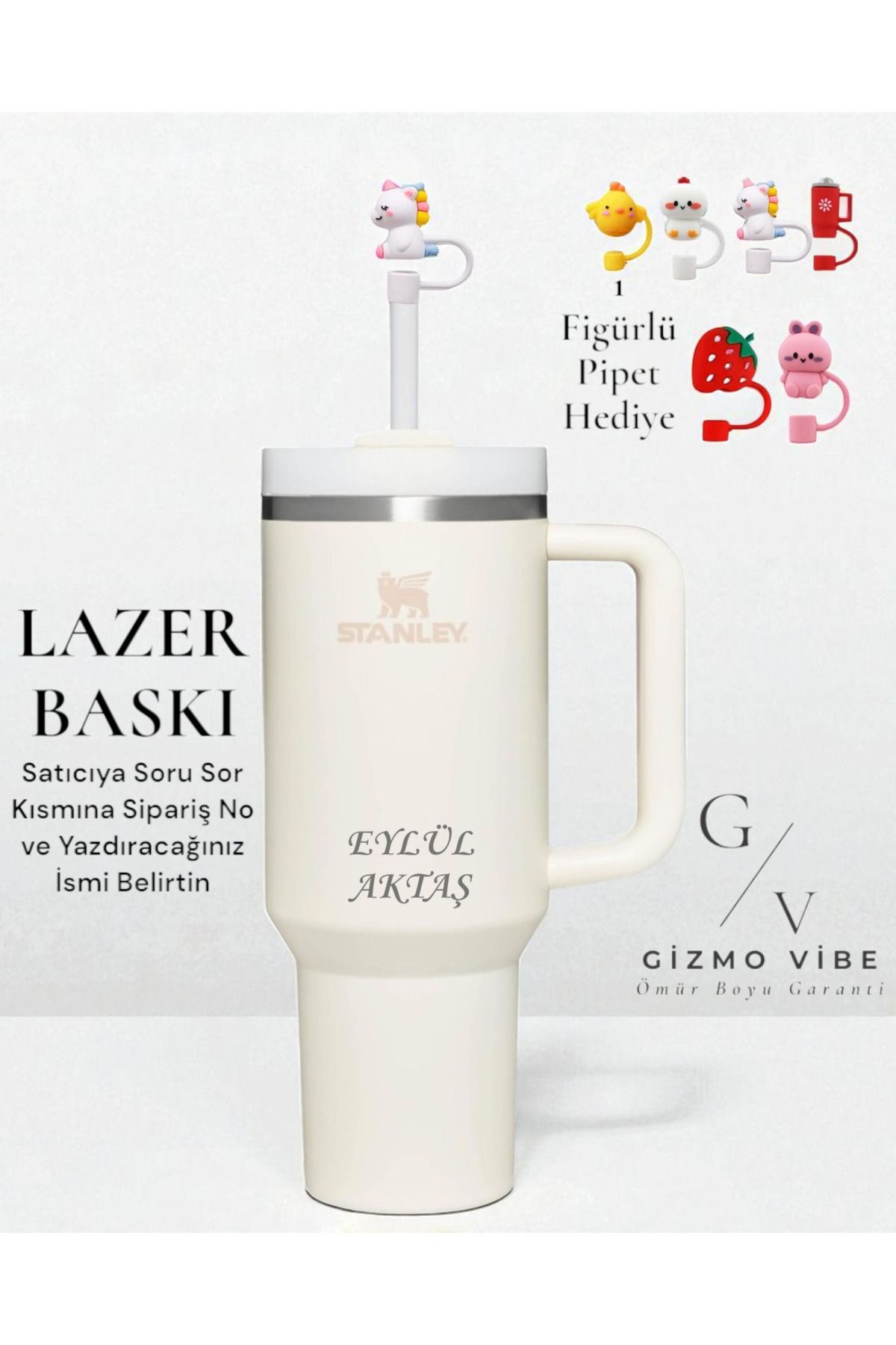Stanley Kişiselleştirilmiş Quencher Pipetli Termos 1,18 L Özel Isimli Krem
