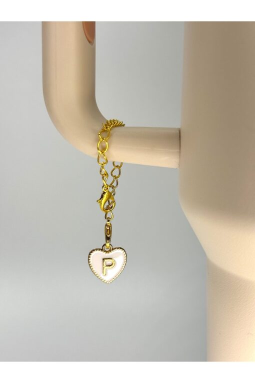 Stanley P Harfli Beyaz Kalpli Termos Uyumlu Aksesuar/P Harfi Kalp Termos Charm/Harf Termos süsü