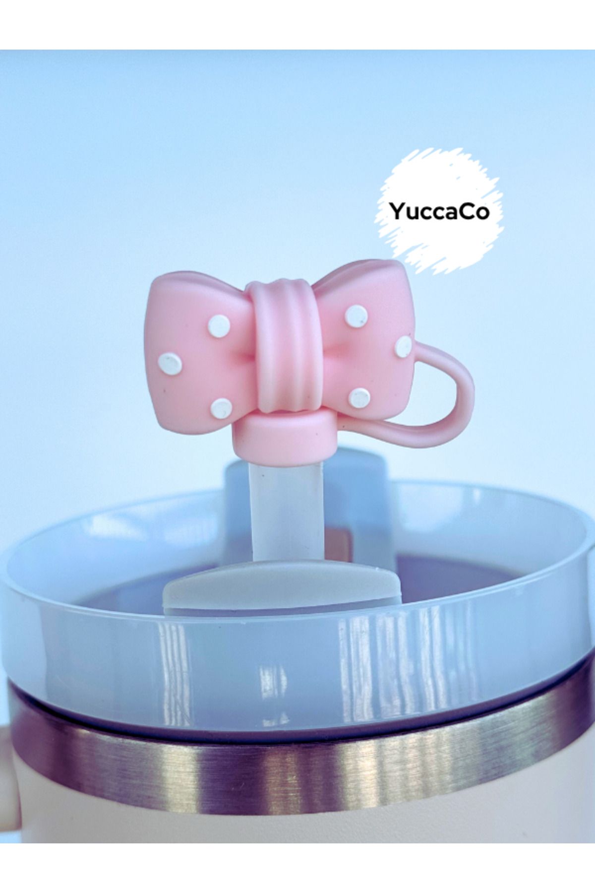 Stanley Pembe Puanlı Kurdele Termos Aksesuar/Fiyonk Pipet Koruyucu/ Kurdeleli Pipet Kılıfı/ Pipet Tıpası