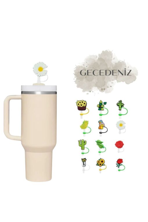 Stanley 1 Adet 10mm Stanley için Pipet Tıpası Çiçekli Pipet Kapağı Quencher Pipet Tıpa