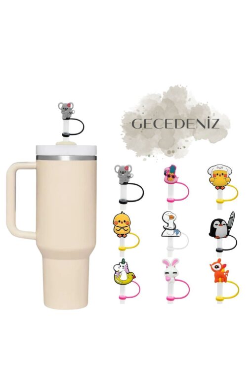 Stanley Gülümseyen Ayıcık 3 lü Parça Stanley ile Uyumlu Kapaklı Pipet Başlığı Bardak Altlığı Simli Pipet 1,071.00₺