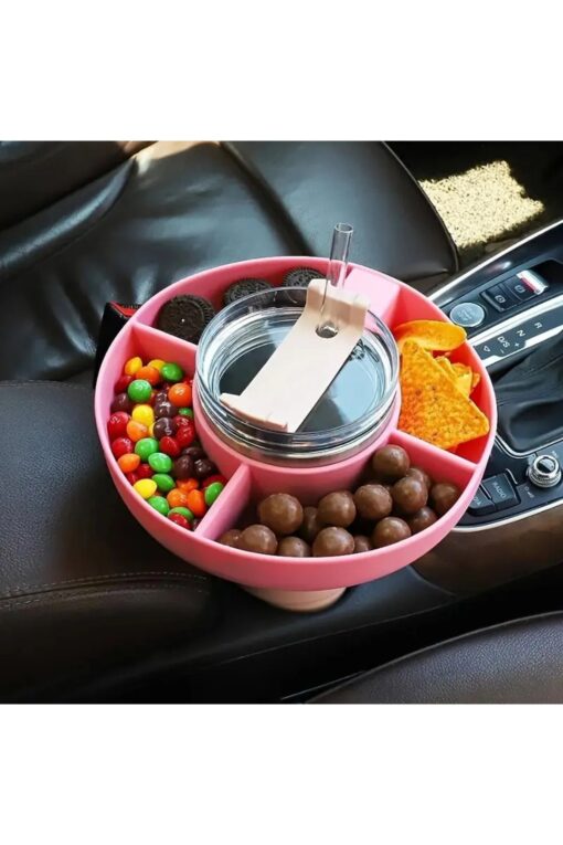 Stanley Quencher Pipetli 1.18 Lt Termos 4 Bölmeli Pembe Plastik Atıştırmalık Çerez Tabağı Termos
