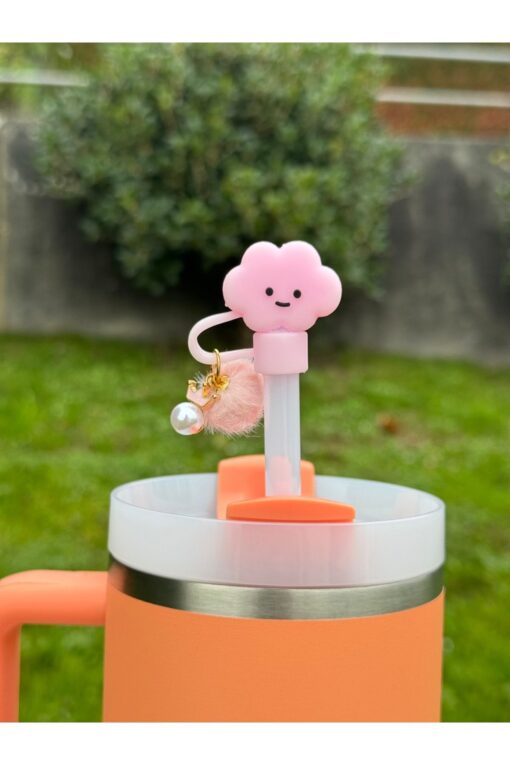 Stanley Termos Uyumlu Charmlı Poponlu Bulut Aksesuar/Bulutlu Pipet Koruyucu Pipet Kılıfı/Pipet Tıpası