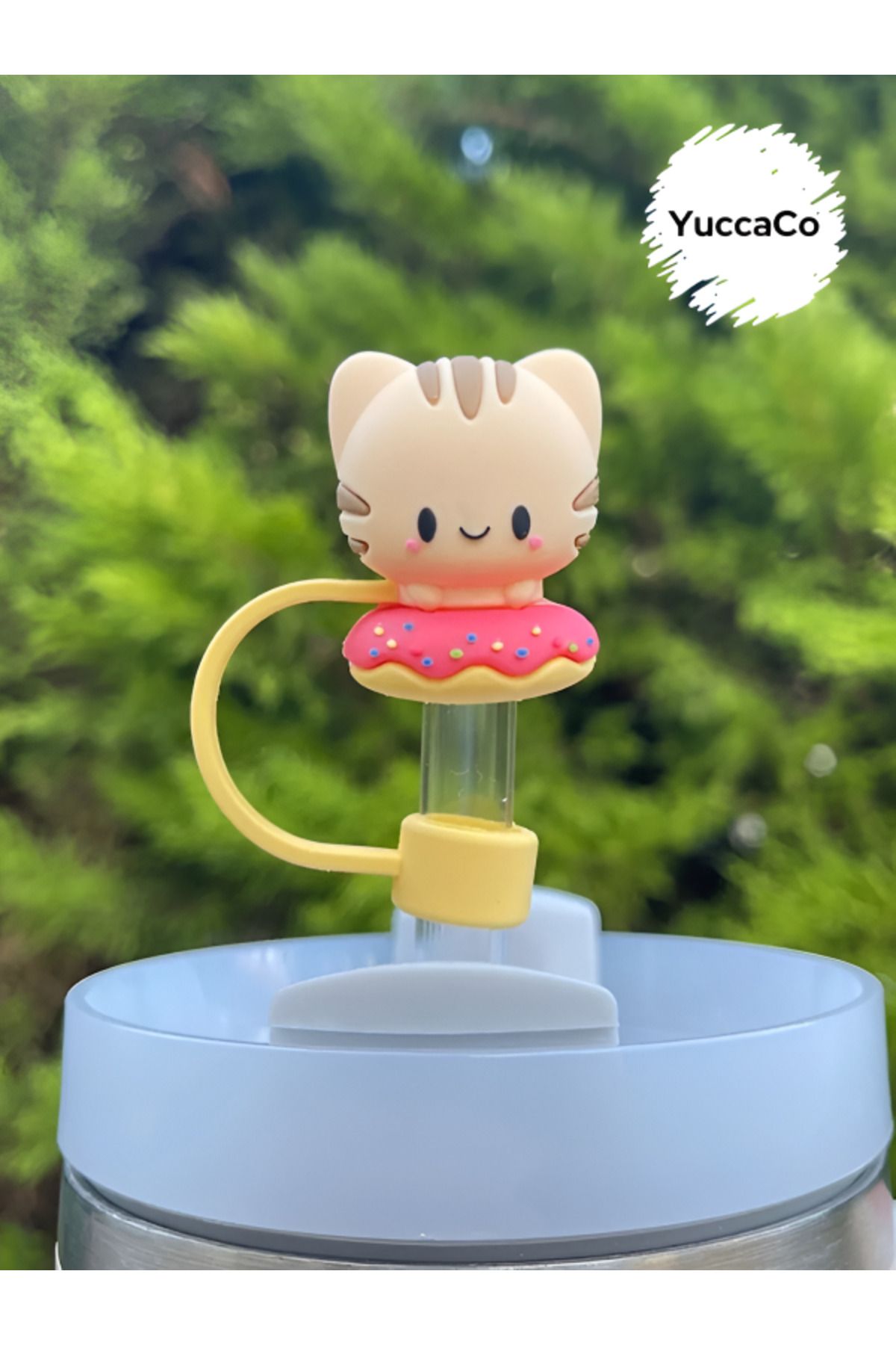 Stanley Termos Uyumlu Kedili Aksesuar/Donut Kedi Koruyucu/Pipet Kılıfı/ Pipet Tıpası