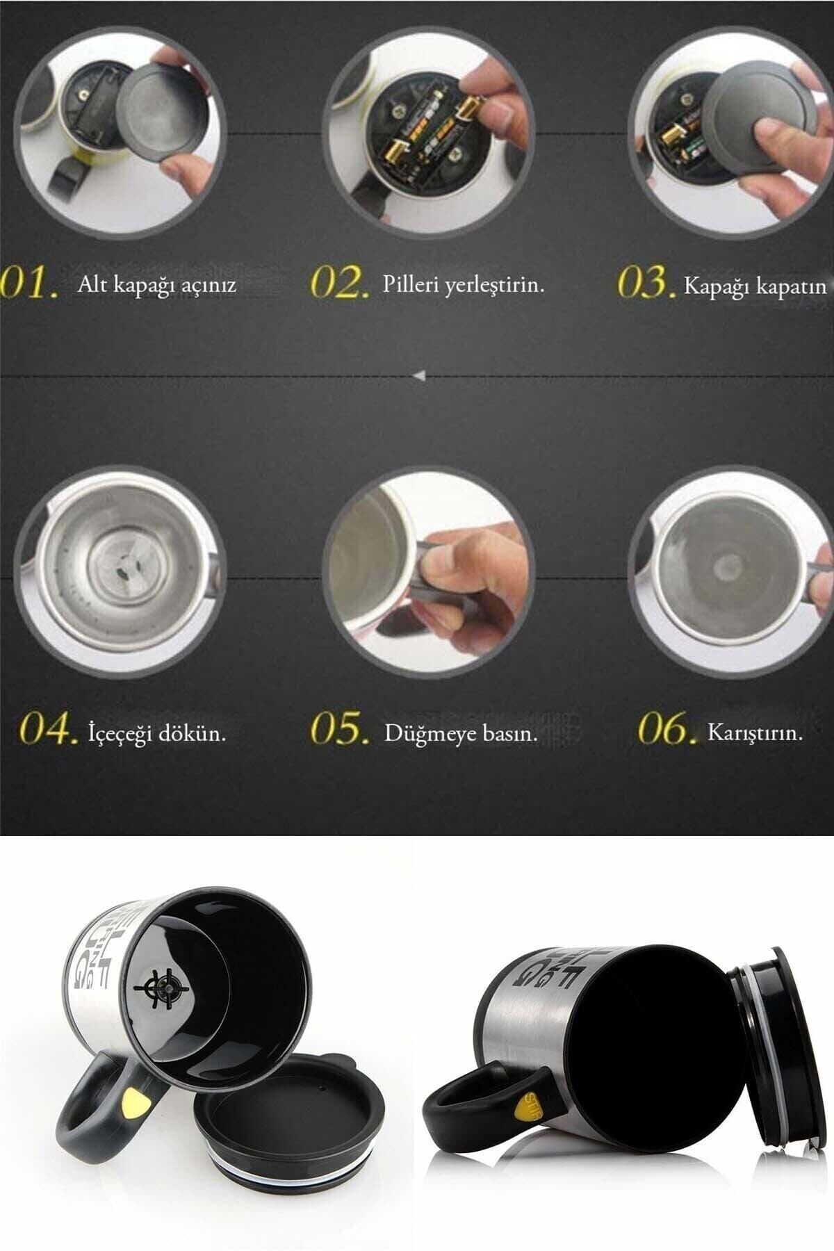 star global Sarı Renk Kendi Kendini Karıştıran Mikser Kupa Termos Bardak Self Mug