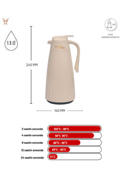 Star Termos Zagana Serisi 1.5 Lt Cam Termos Krem | Cam İç Hazneli 12s Sıcak 24s Soğuk 48s Buz
