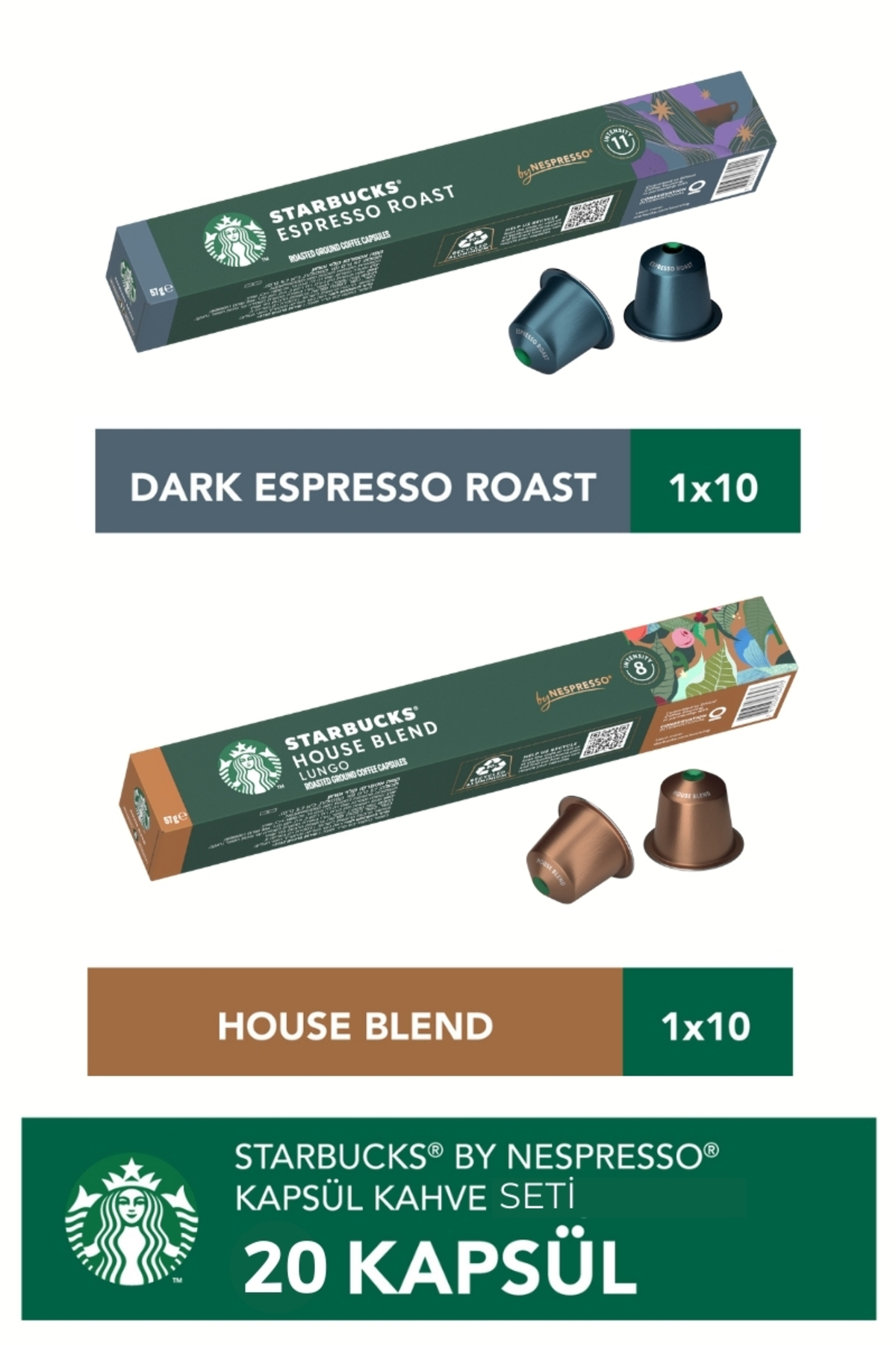 Starbucks Nespresso Uyumlu Kapsül Kahve Seti 20'li – Espresso, House Blend ürünü ucuz fiyat, hızlı kargo imkanı ile hemen sitemizden sipariş verin.