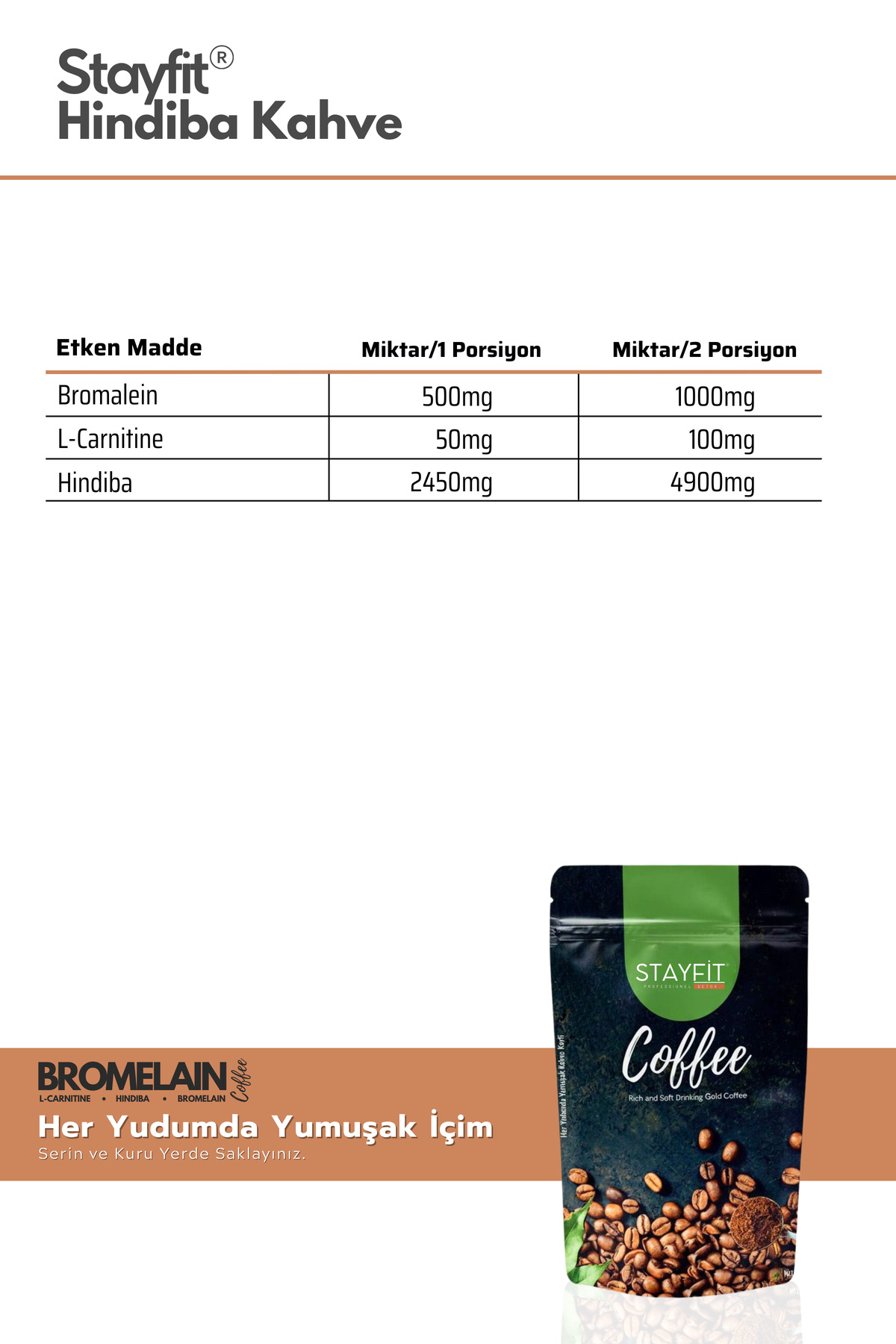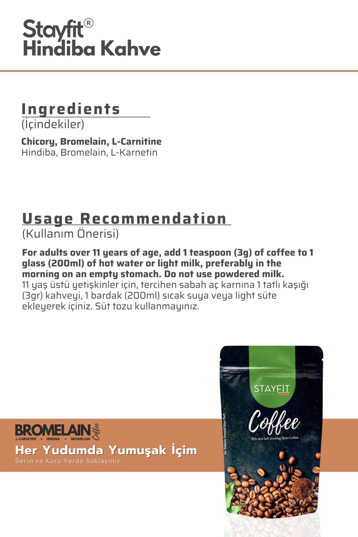 STAYFİT 30 Günlük 100 gr Toz Hindiba Kahve - 500 Mg Bromelain 2400 Gdu - L-carnitine Takviyeli ürünü ucuz fiyat, hızlı kargo imkanı ile hemen sitemizden sipariş verin.
